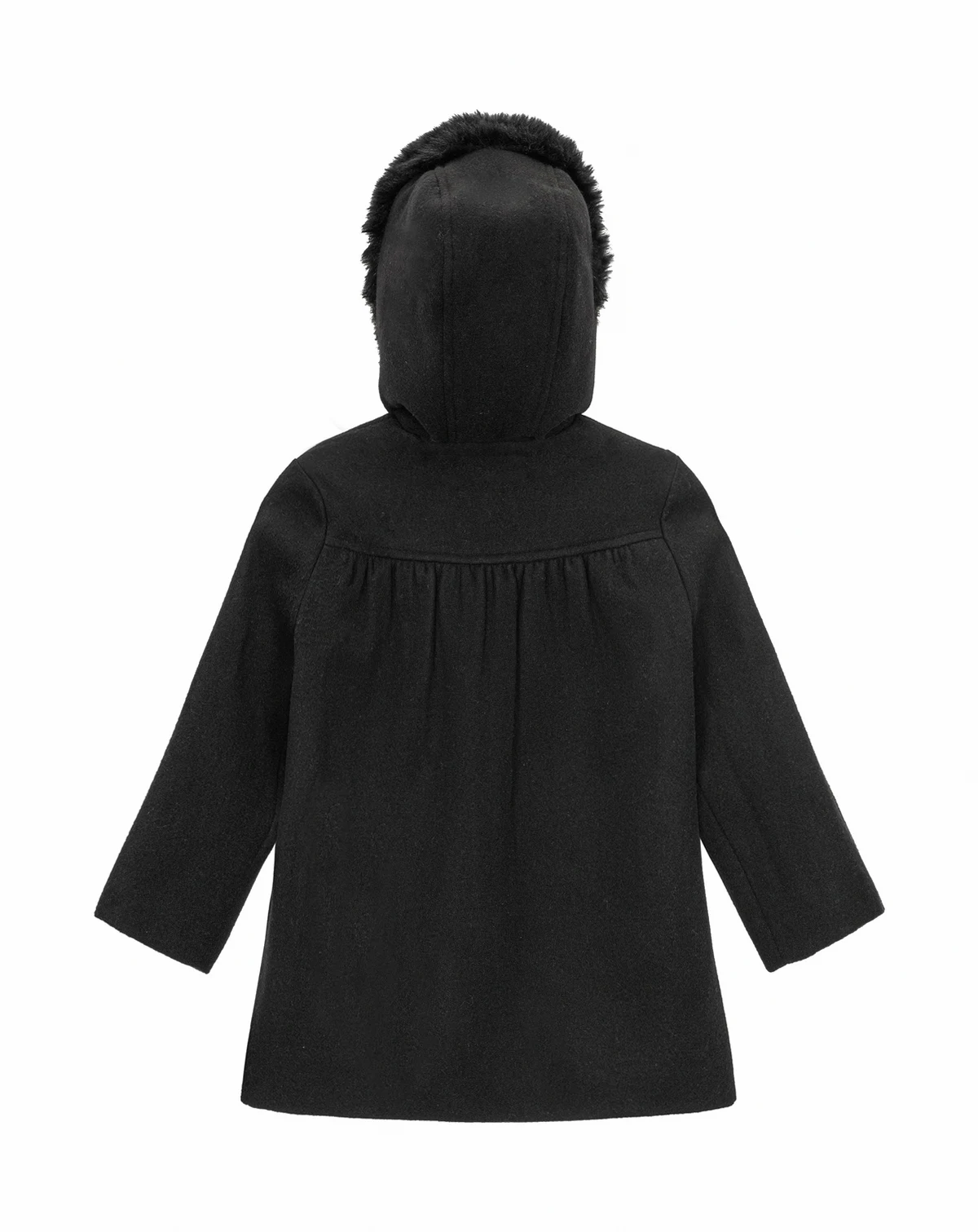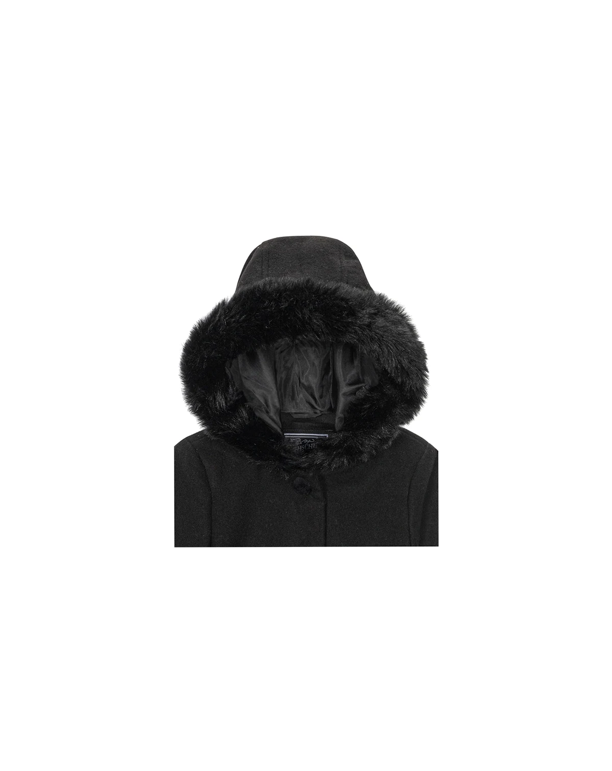 Prepare for chilly days in style with this dress coat from S Rothschild & Co, featuring a hooded neckline and a classic button closure. Elegant details such as faux wool fur and velvet trimming add a luxurious touch, while front pockets provide both warmth and functionality.