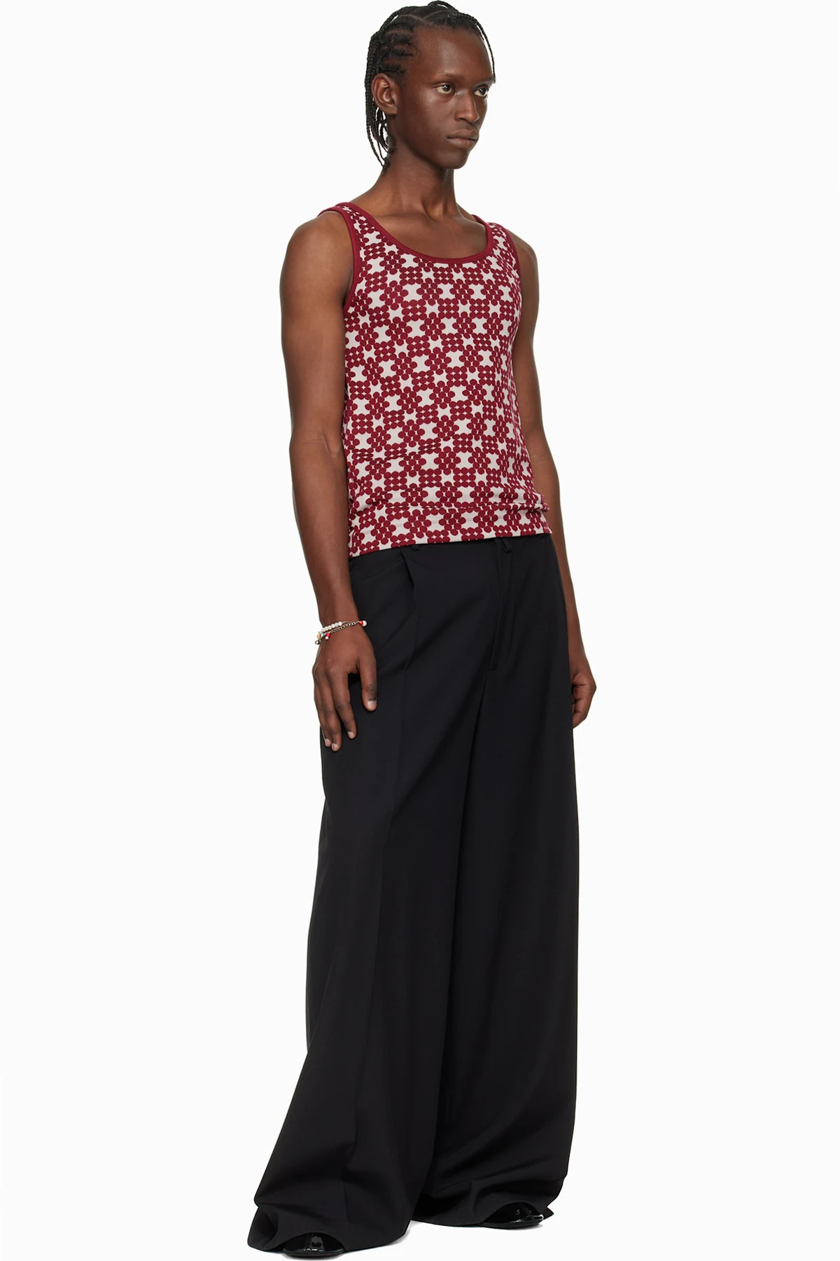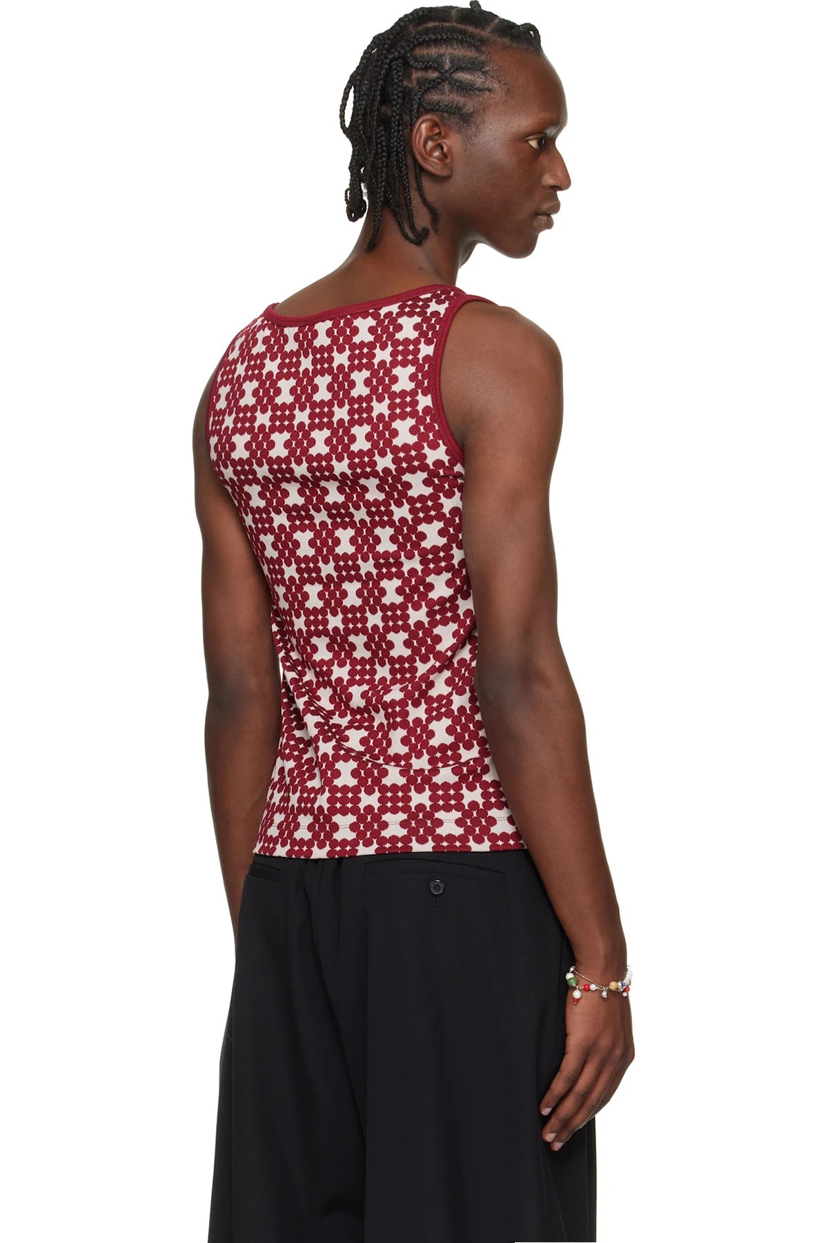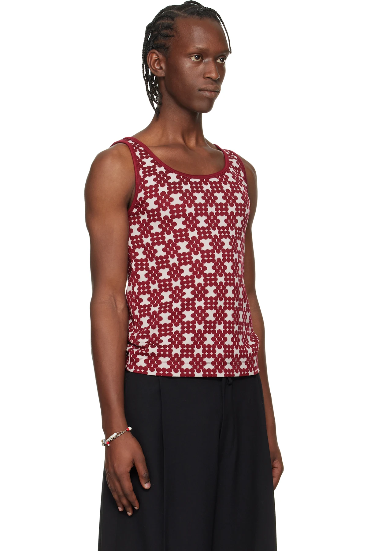 Off-White & Red Jacquard Tank Top