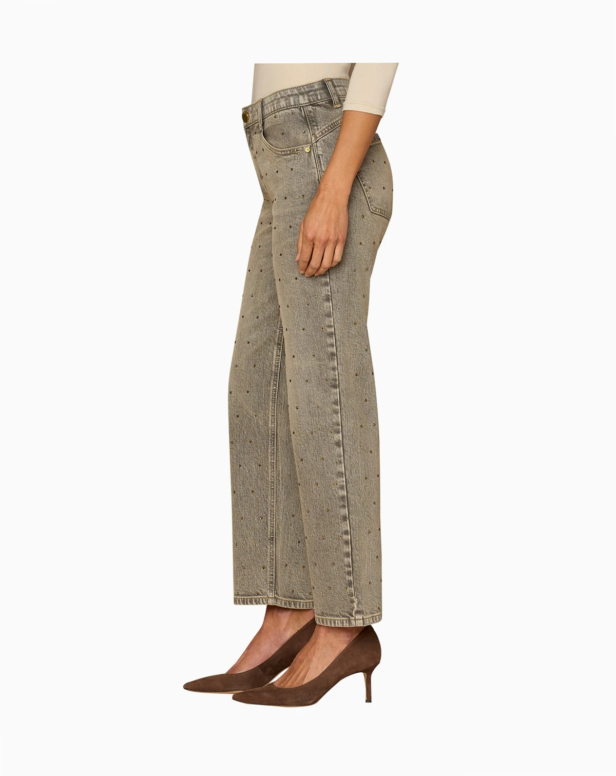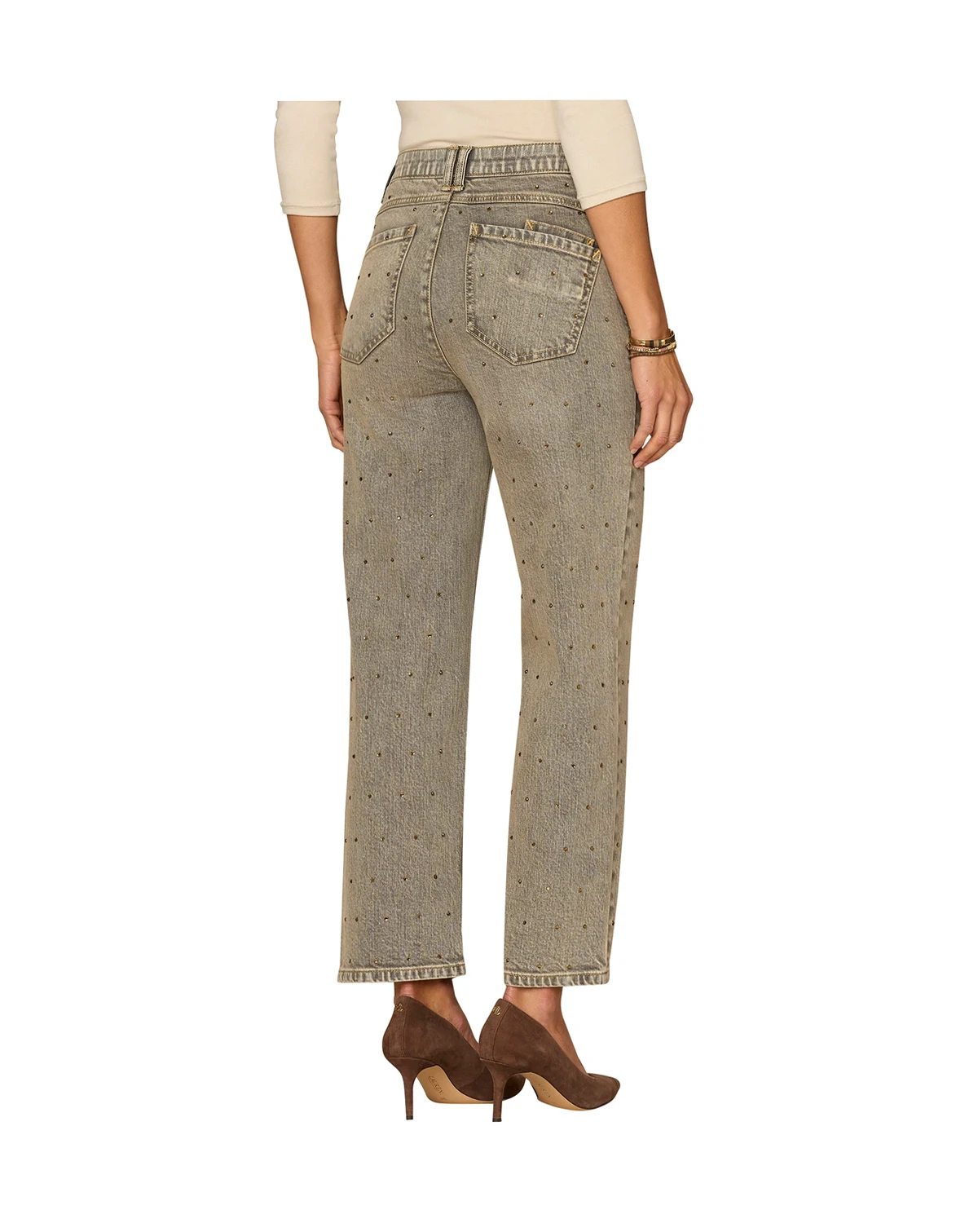 Enjoy a comfortable fit with these high-rise boyfriend jeans from Democracy, designed with AbSolution technology to mold and hold. A barrel leg and rhinestone details offer a relaxed yet stylish look.