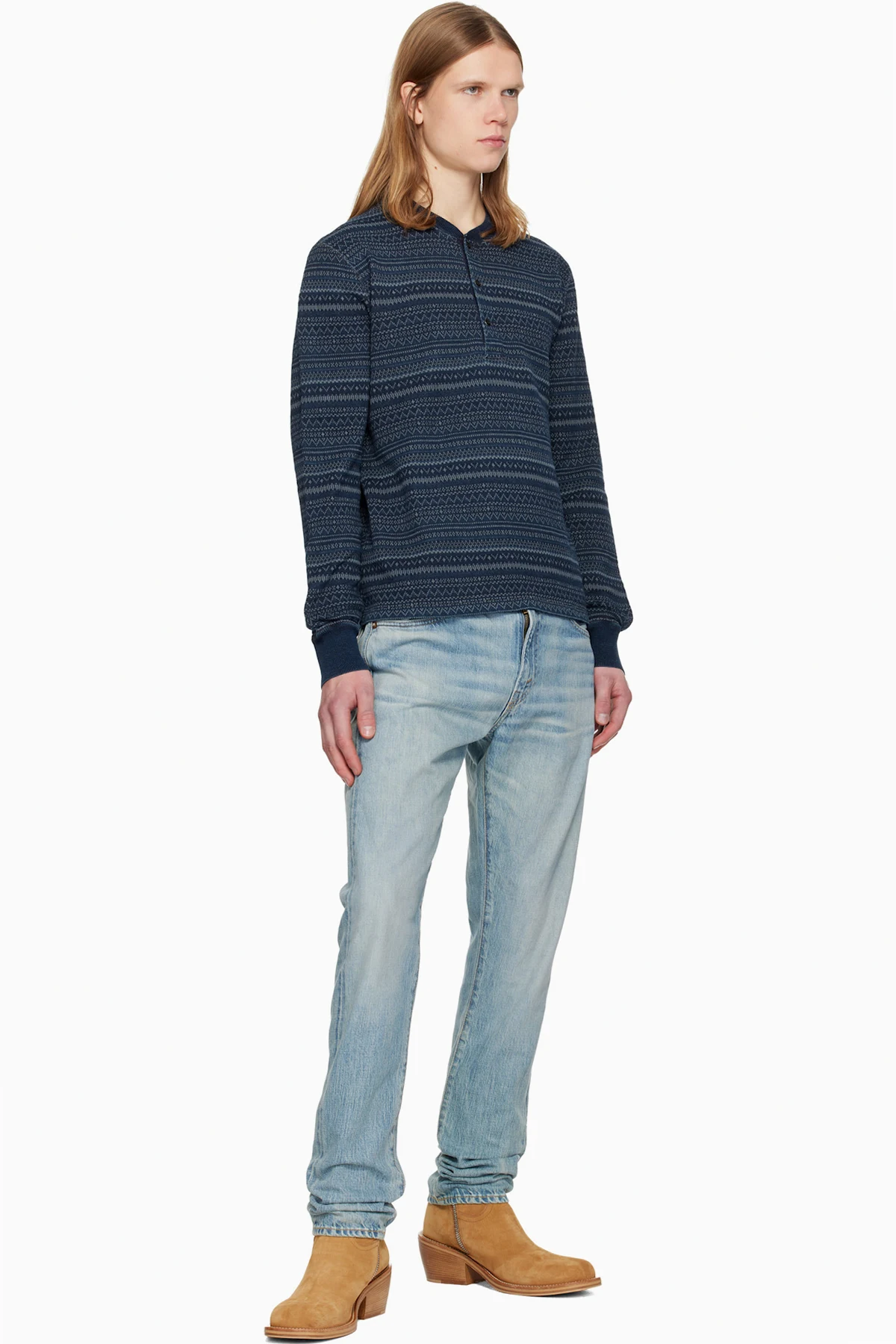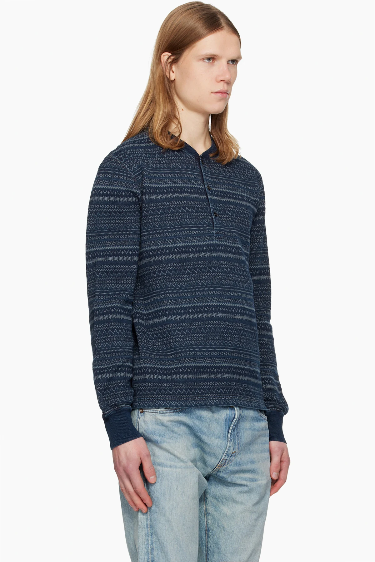 Navy Indigo Jacquard Henley