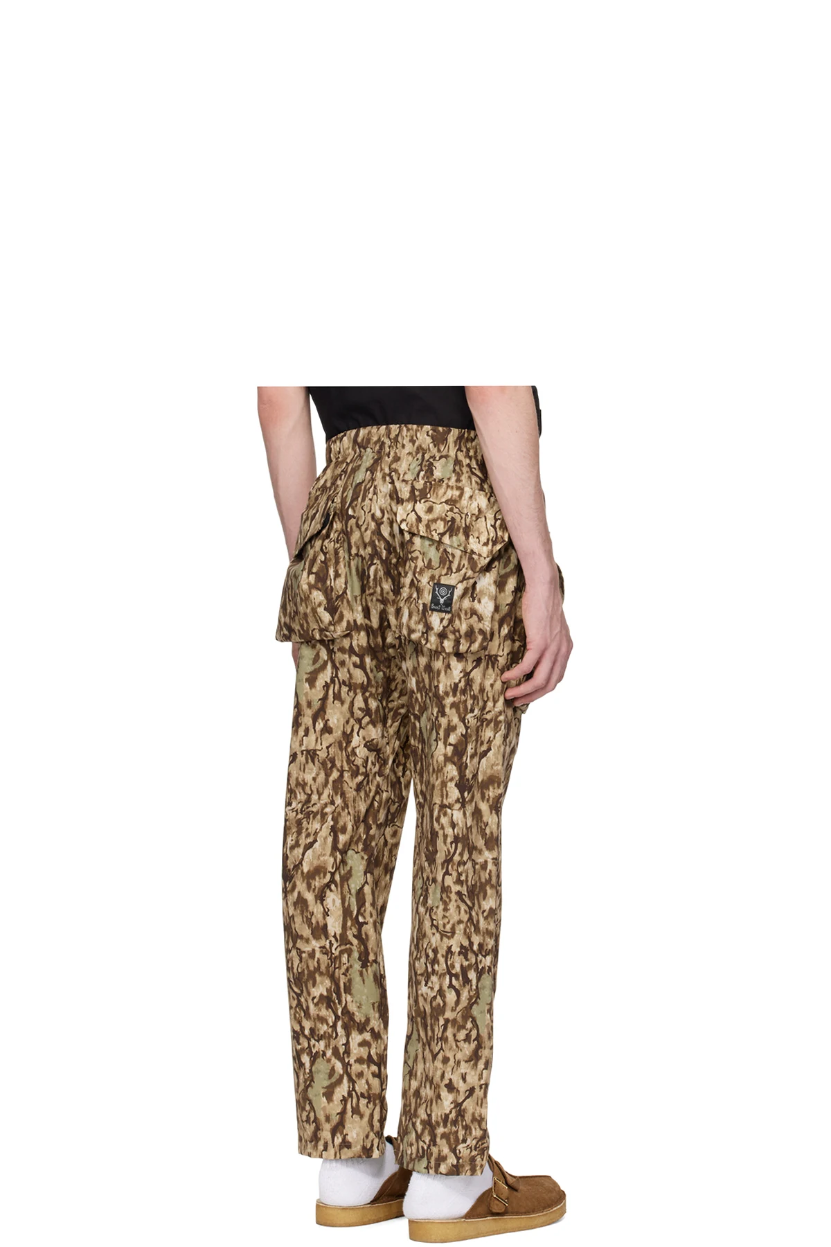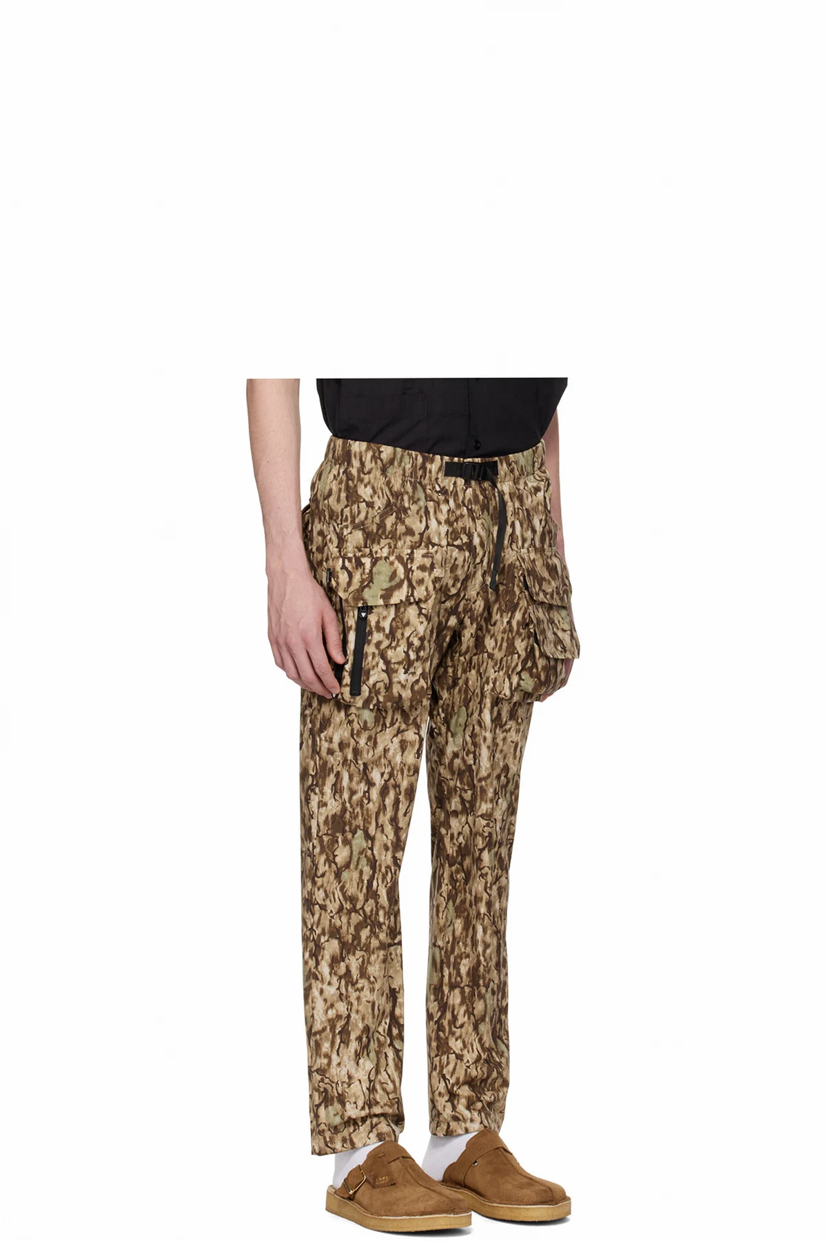 Polyester ripstop trousers. Camouflage pattern printed throughout.