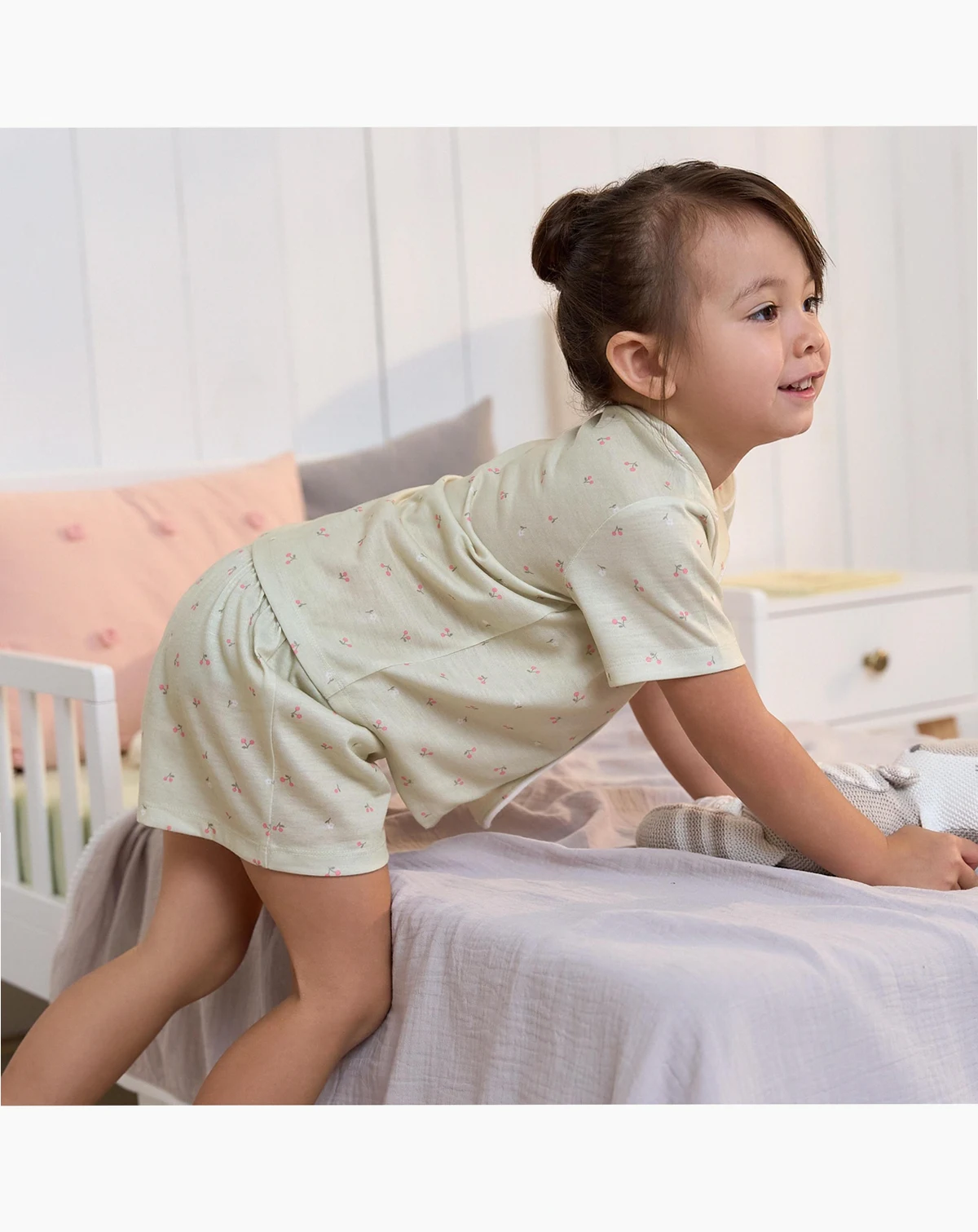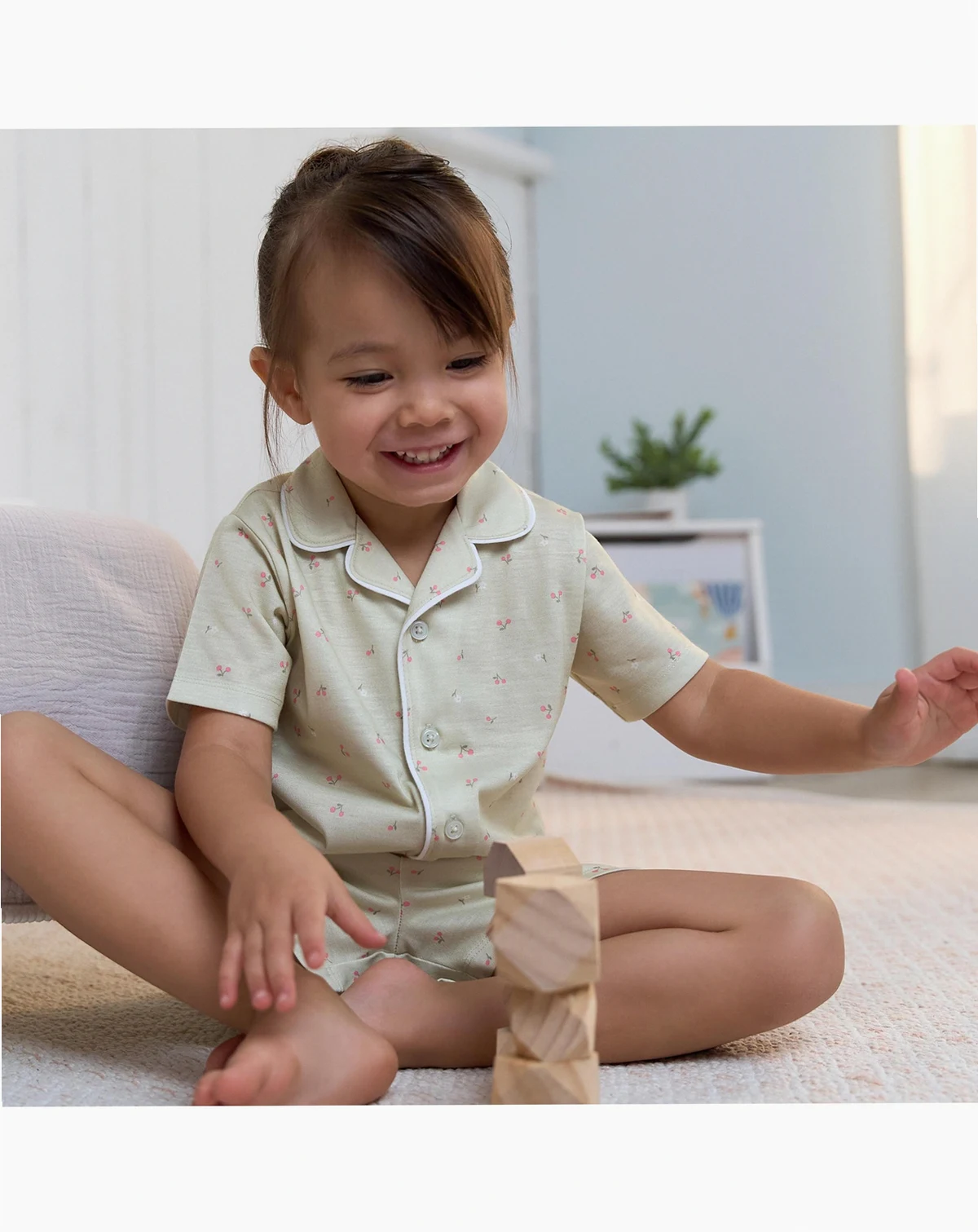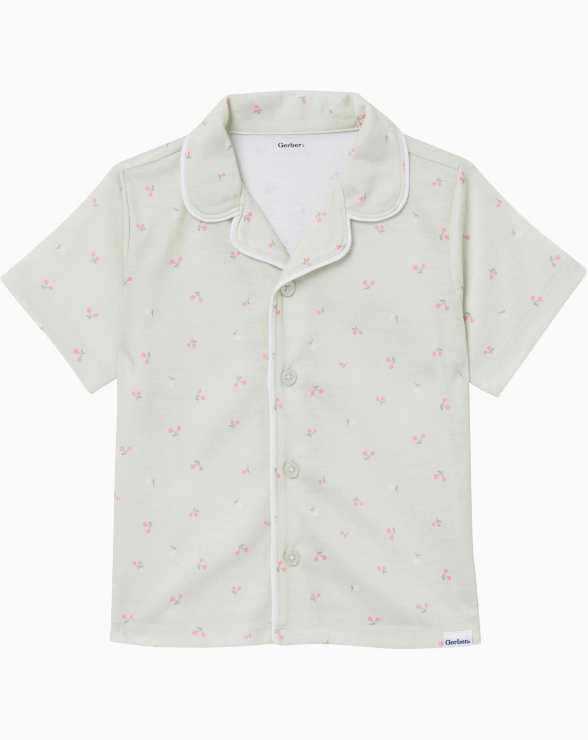 Our baby or toddler girl 2-piece pajama set combines cute style with comfort, making it the perfect choice for your little one! Crafted from soft and stretchy fabric, these pajamas offer a comfy night's sleep with a look she'll love. The comfort-stretch waistband on the shorts ensures a gentle fit, and the soft, rounded collar adds an extra touch of coziness. Ideal for warmer nights, this pajama set will keep her snug and content, making bedtime a favorite time of day. Our essentials have been independently certified with STANDARD 100 by OEKO-TEX so that you don t have to worry about harmful substances in your baby s wardrobe. Includes one short sleeve top with matching shorts. Flame resistant for child safety.