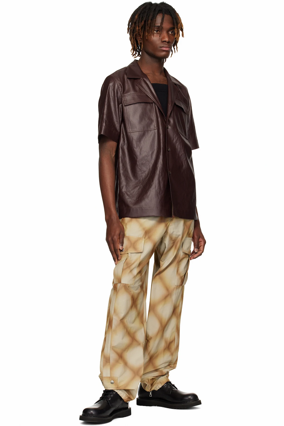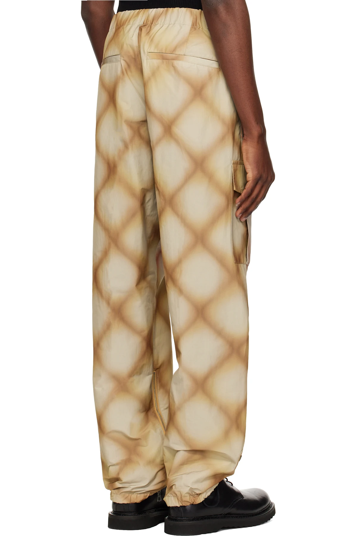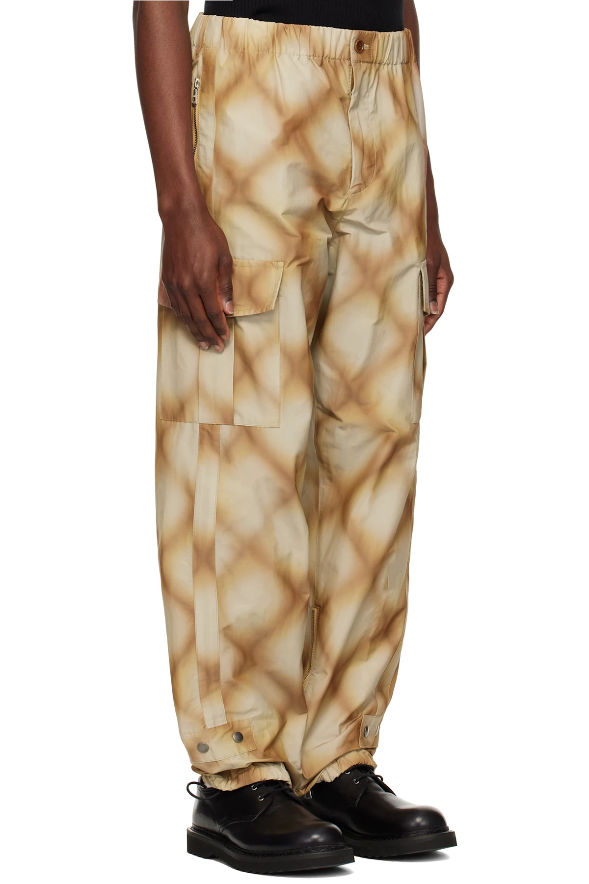 Polyester- and cotton-blend taffeta cargo pants. Check pattern printed throughout.