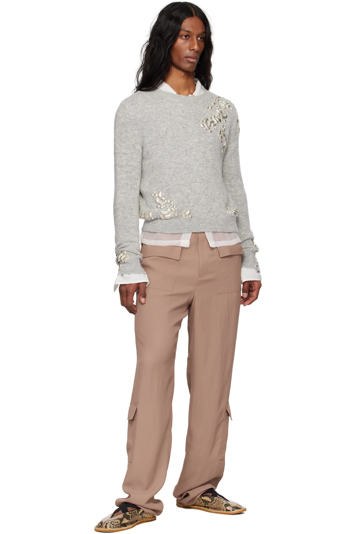 Gray Multi-Pocket Stitch Pointed Cargo Pants