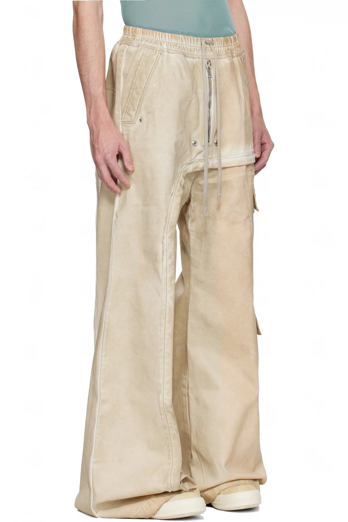 Beige Hollywood Imbalanced Double Cargo Jumbo Belas Denim Pants