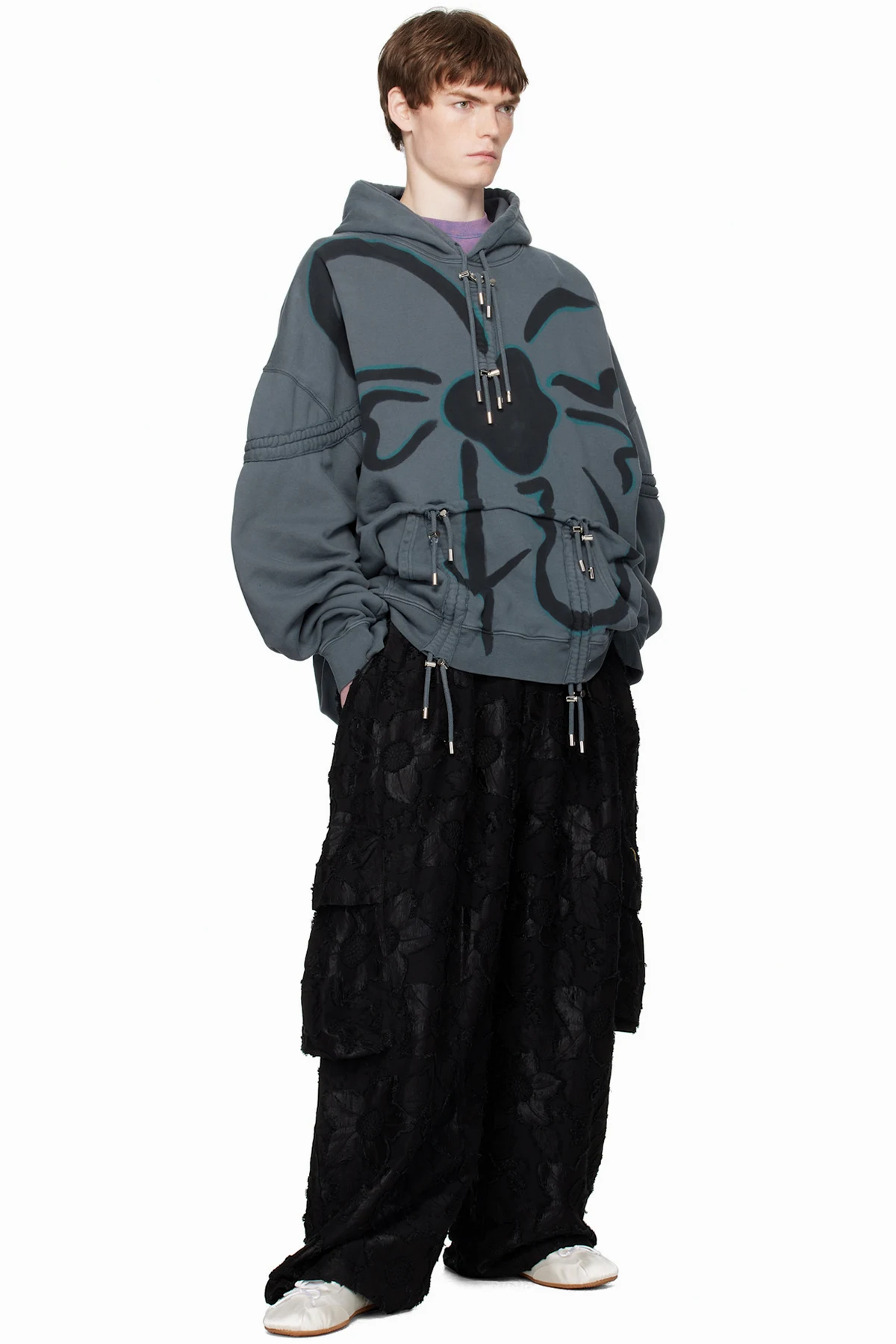 Gray Multi-Pocket Stitch Pointed Cargo Pants