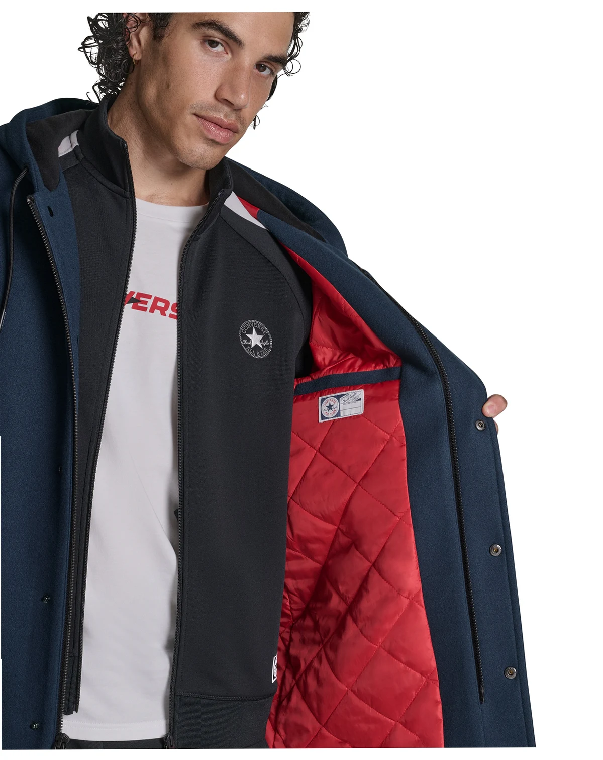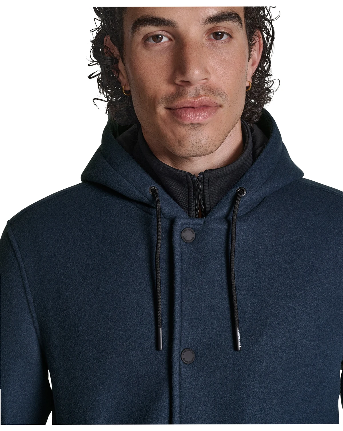 Boasting a classic varsity style, this hooded jacket from Converse features an attached hood with an adjustable drawcord for a personalized fit. Lower front welt pockets and an interior pocket offer convenient storage options.