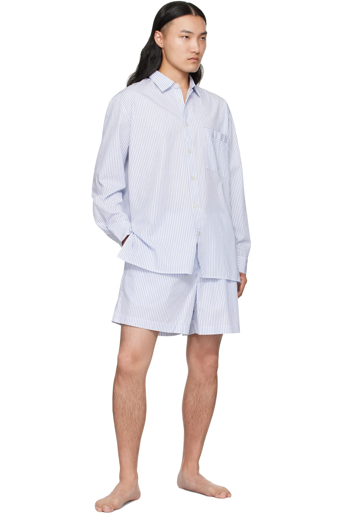 White & Brown Poplin Long-Sleeved Pyjama Shirt