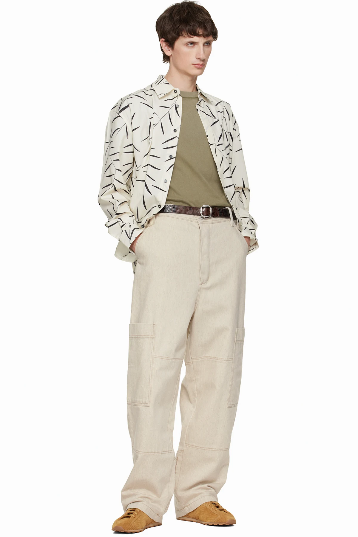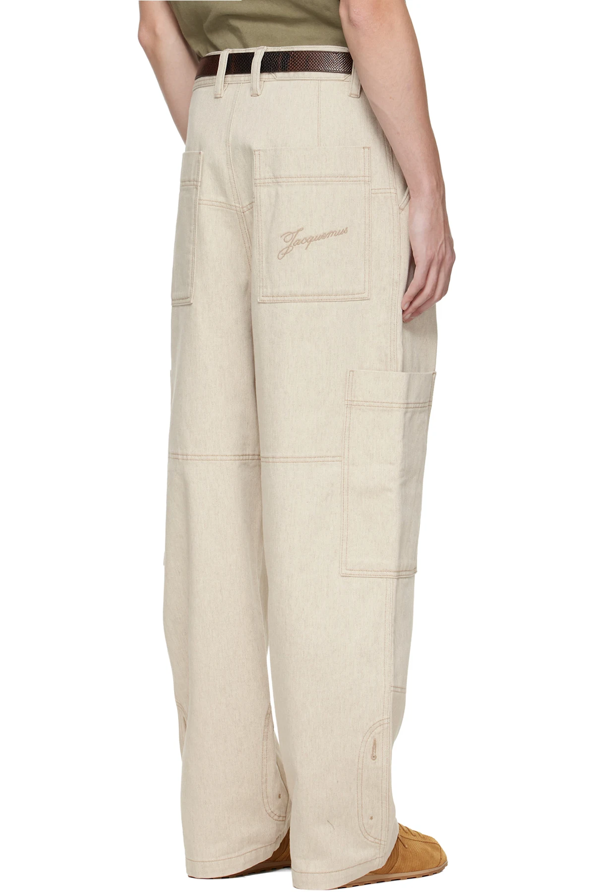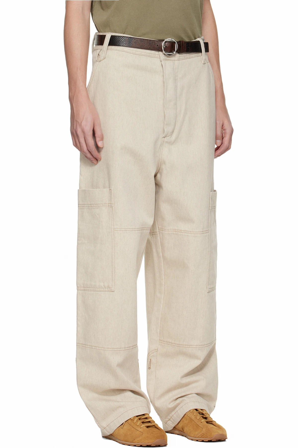 Non-stretch cotton- and hemp-blend denim cargo pants.