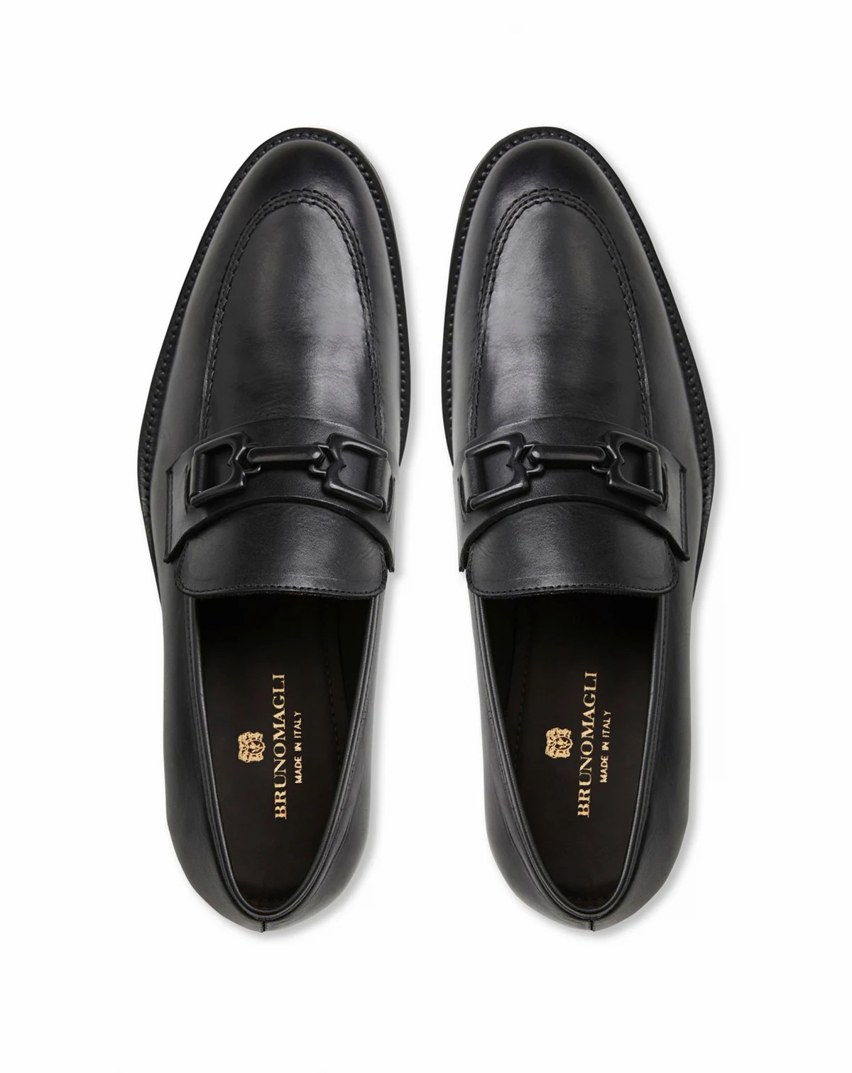 A casual driving moccasin loafer with signature Bruno Magli horse bit ornament. Finished in soft supple Italian suedes and leathers. Set upon a rubber heel-wrapping driving outsole and fully leather lined for additional comfort and support.