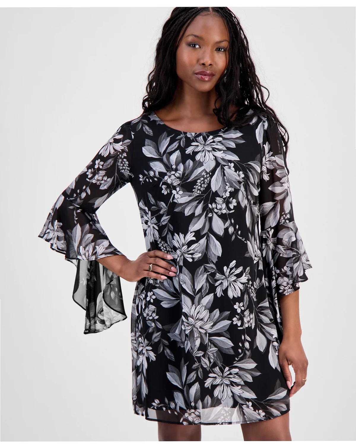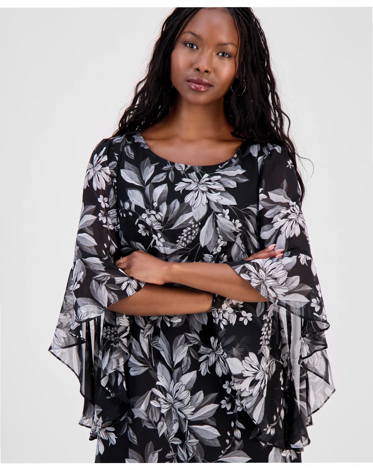 A party look that's always relevant, this petite dress from Connected frames a sheath silhouette with floaty sleeves for beautiful balance.