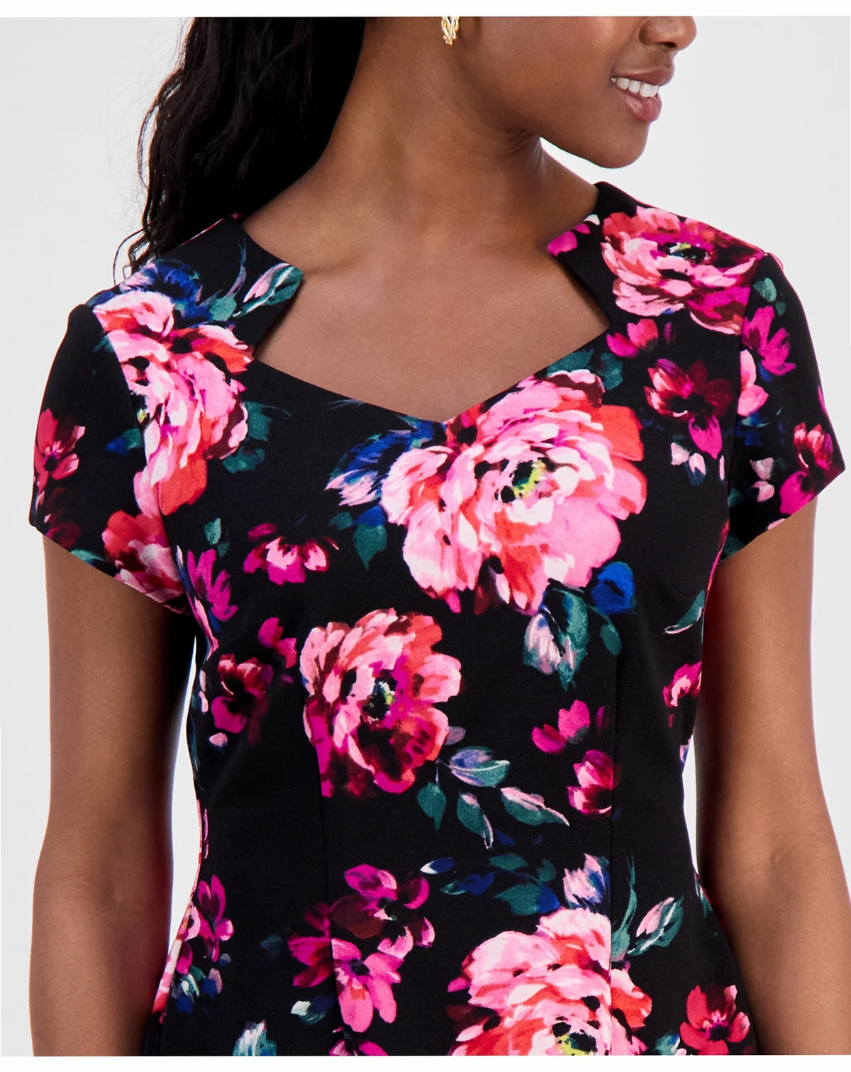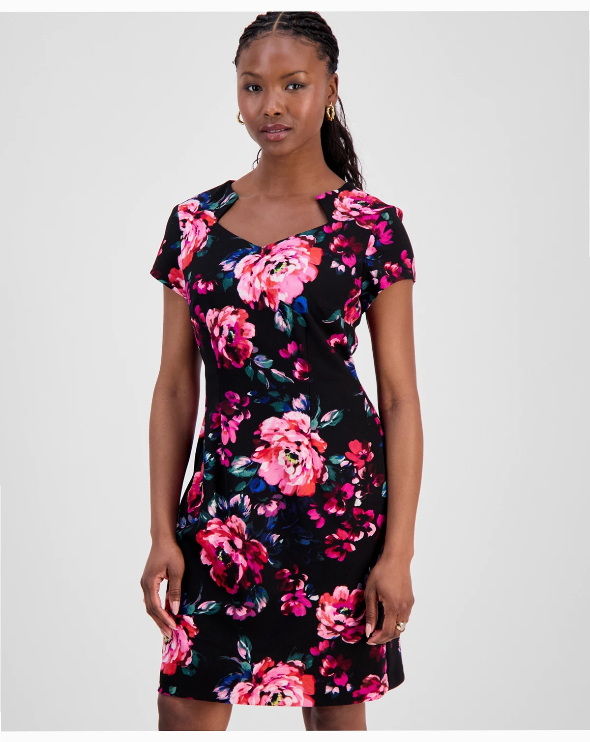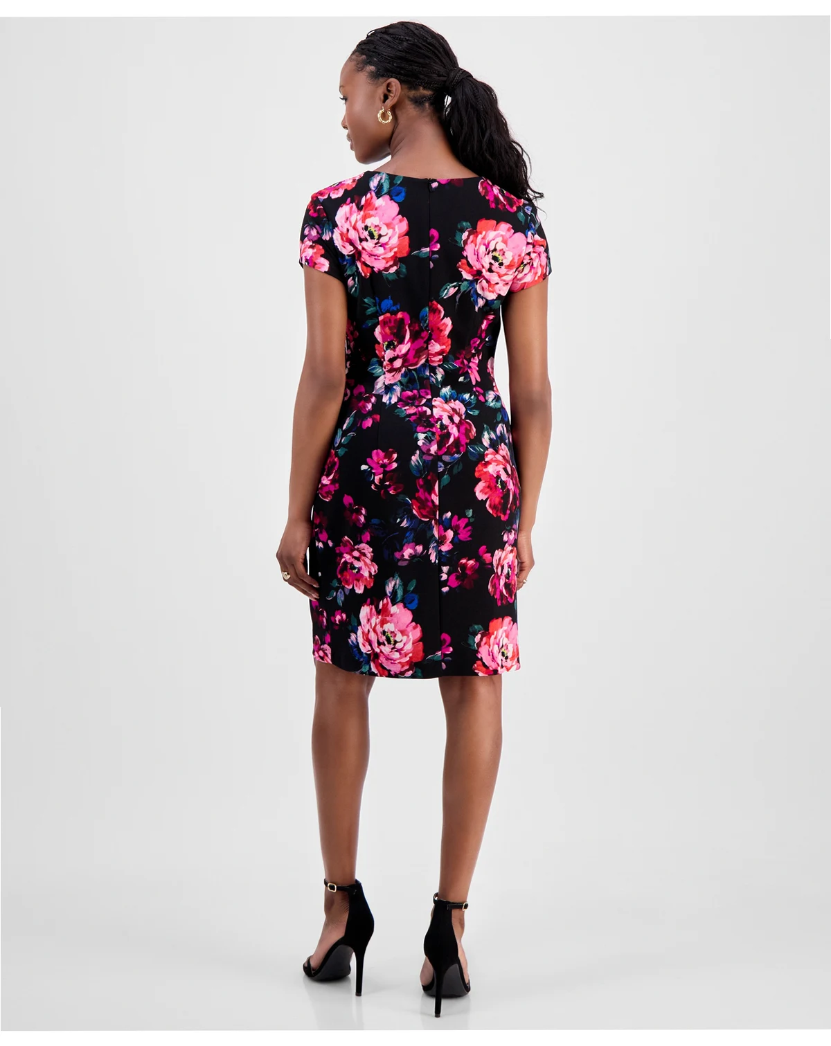 Bring a pop of color to your next party with this fabulously floral petite sheath dress by Connected.
