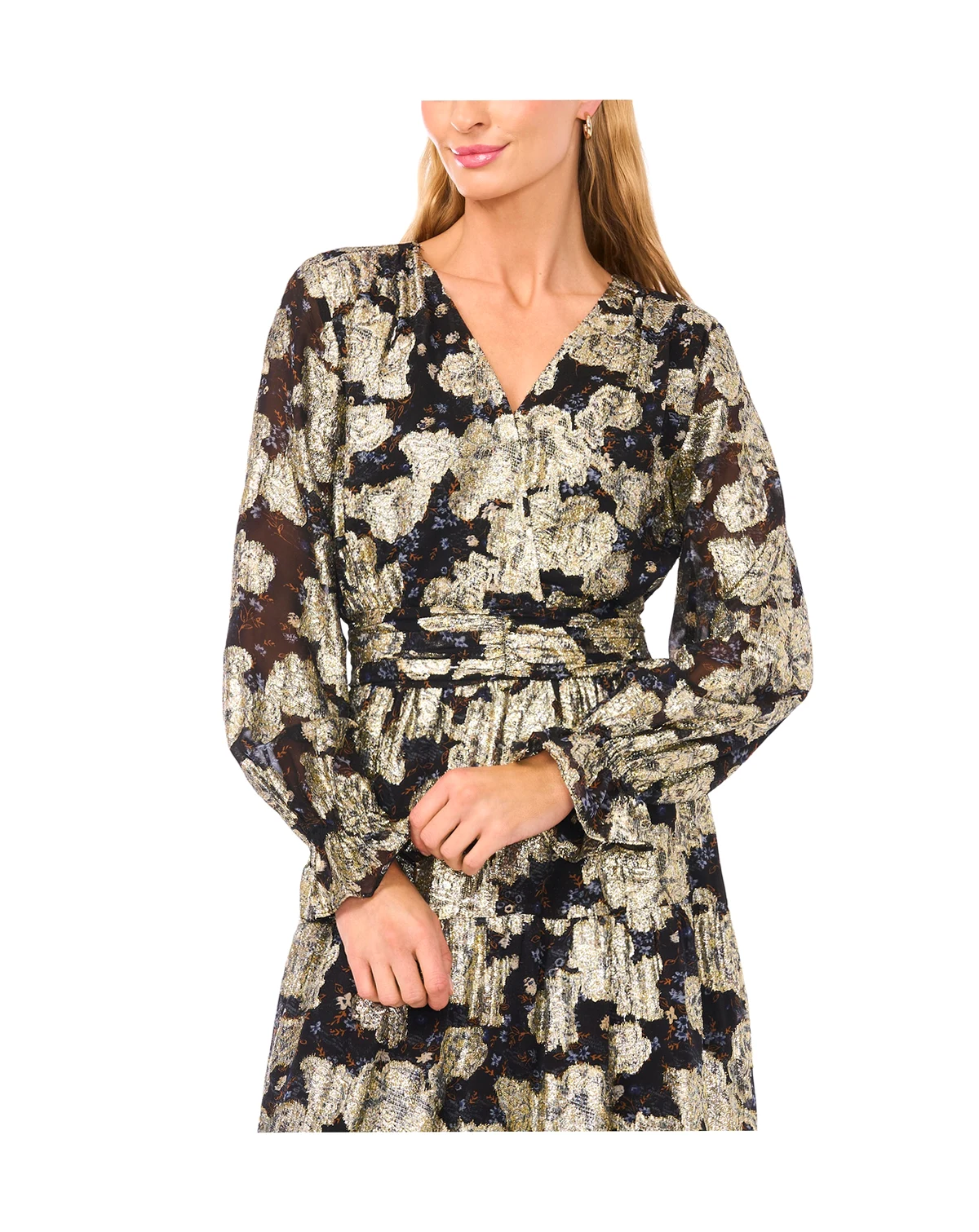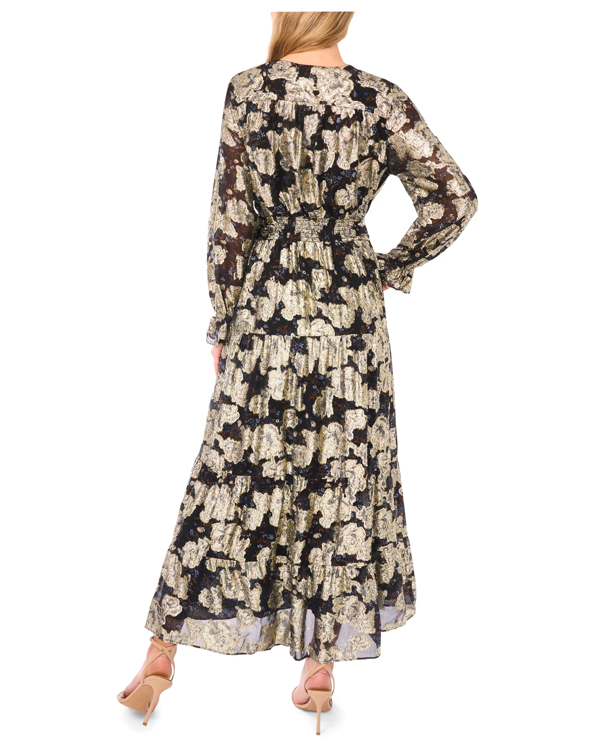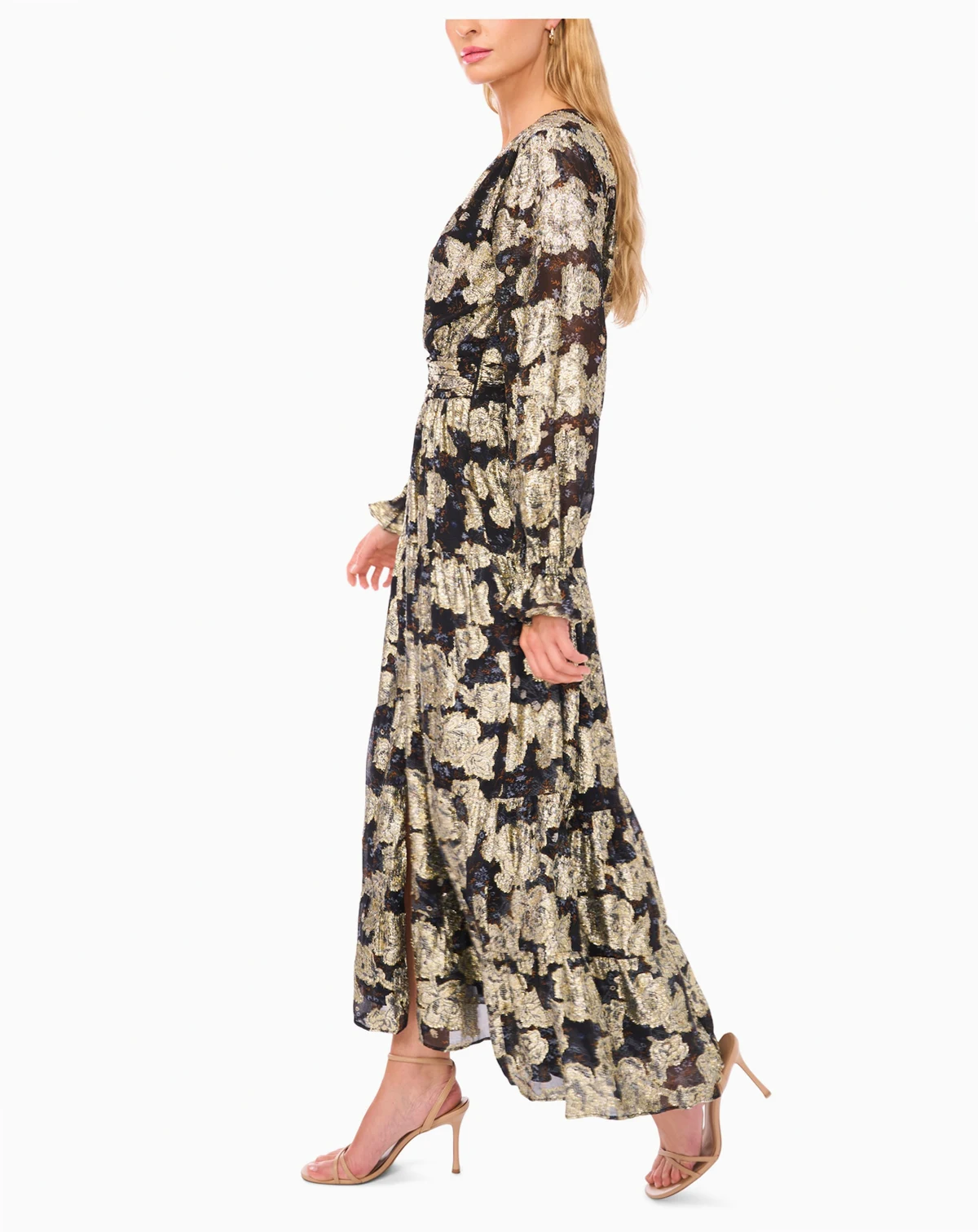 Shine in this MSK foil maxi dress, designed with a V-neckline and long sleeves for timeless sophistication. A flowing silhouette and center-back zipper provide a secure, tailored fit for effortless elegance.