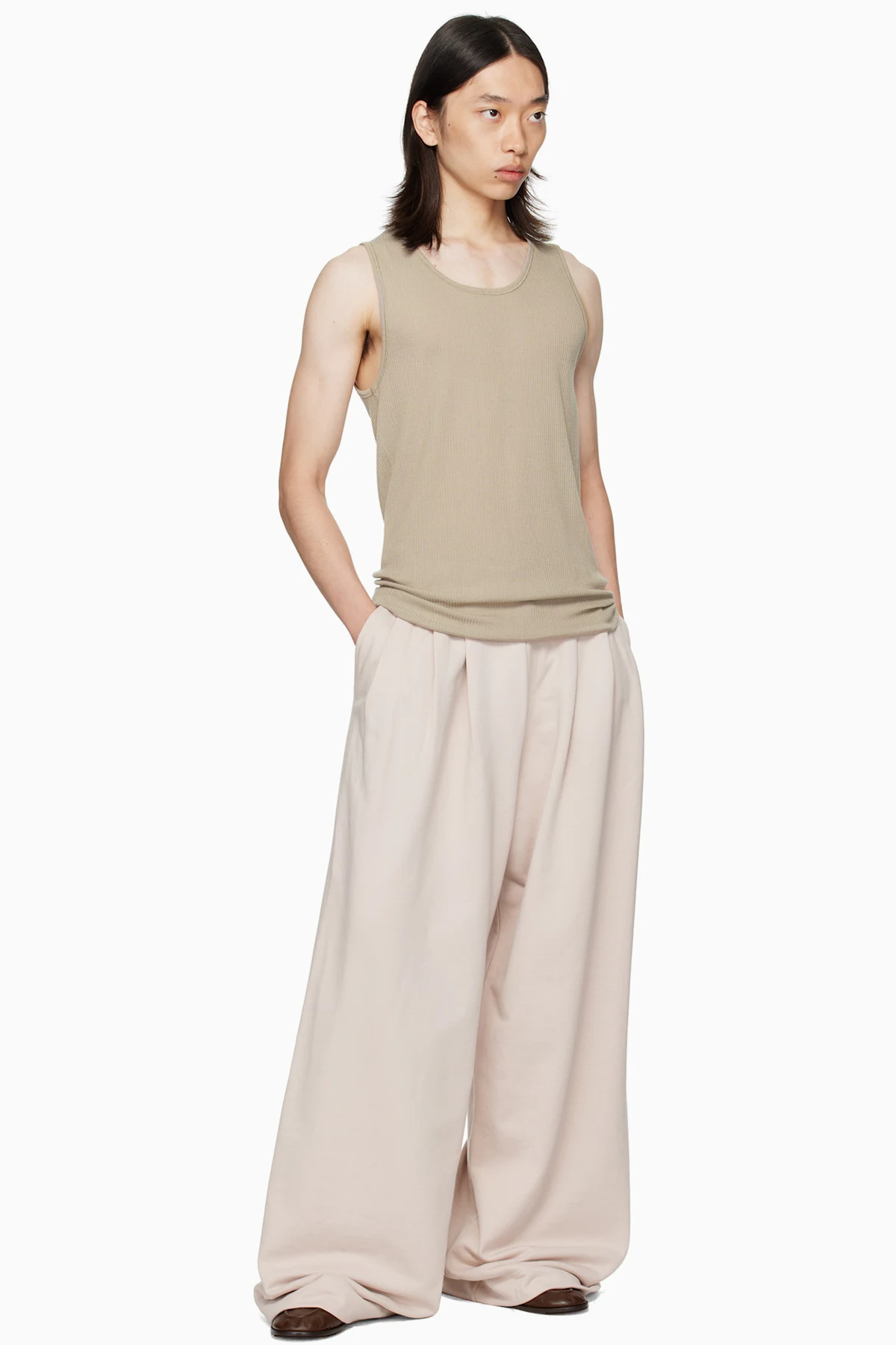 · Pleats at waist