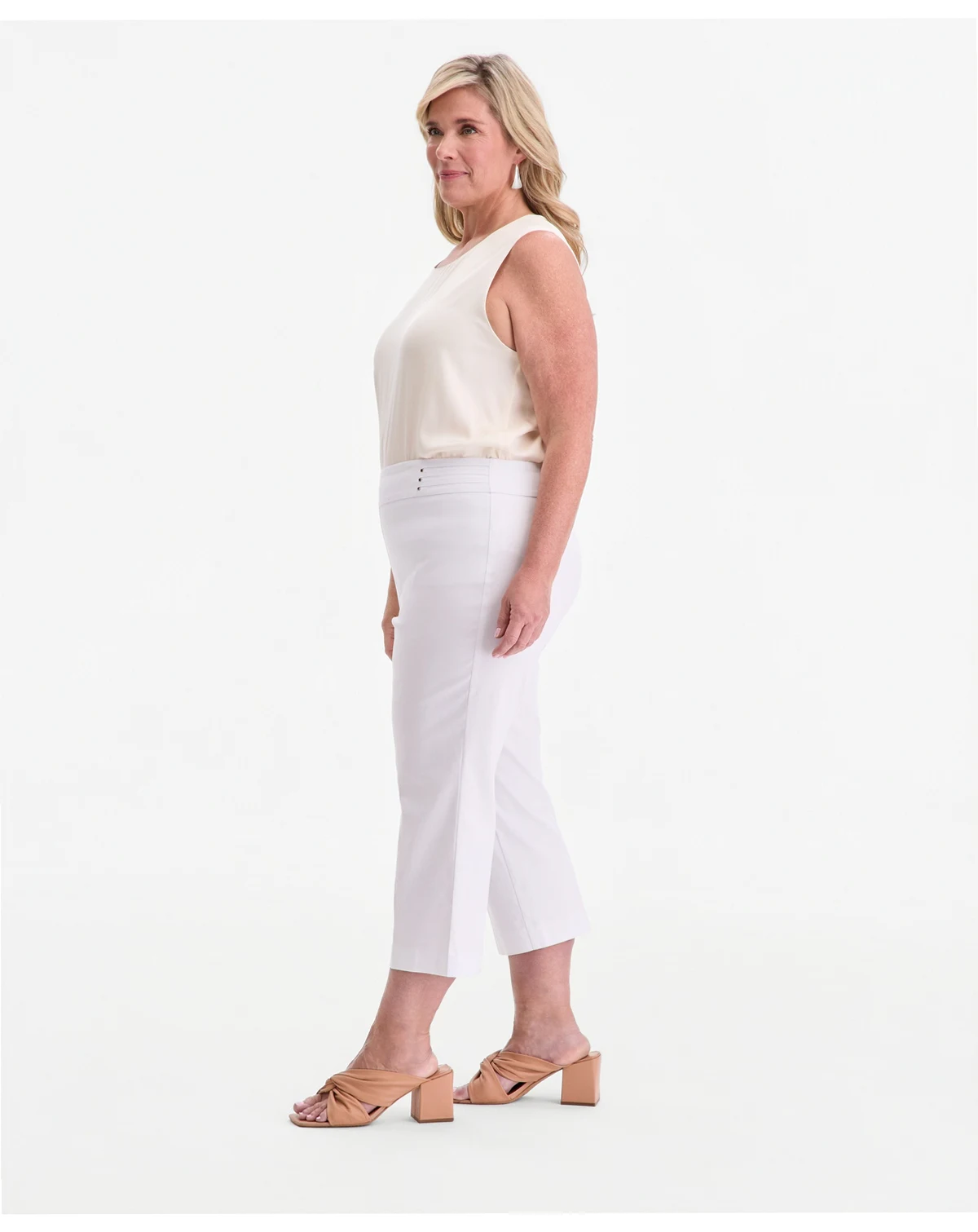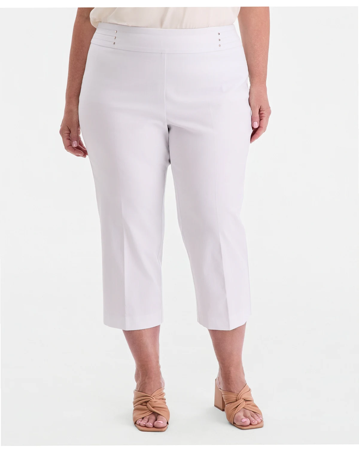 Approx. model height is 5'10" and she is wearing size 2X; Approx. inseam: 30-1/2"; High rise; relaxed fit through hips and thighs; slim leg