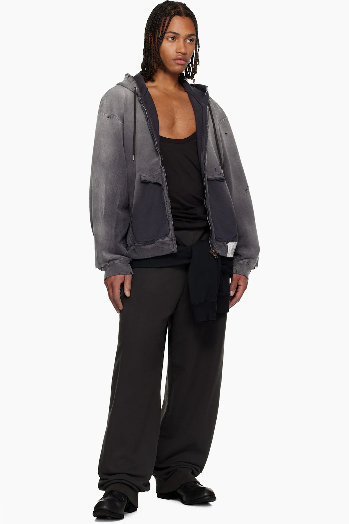 French terry sweatpants. Integrated sweatshirt-style panel at back waistband.