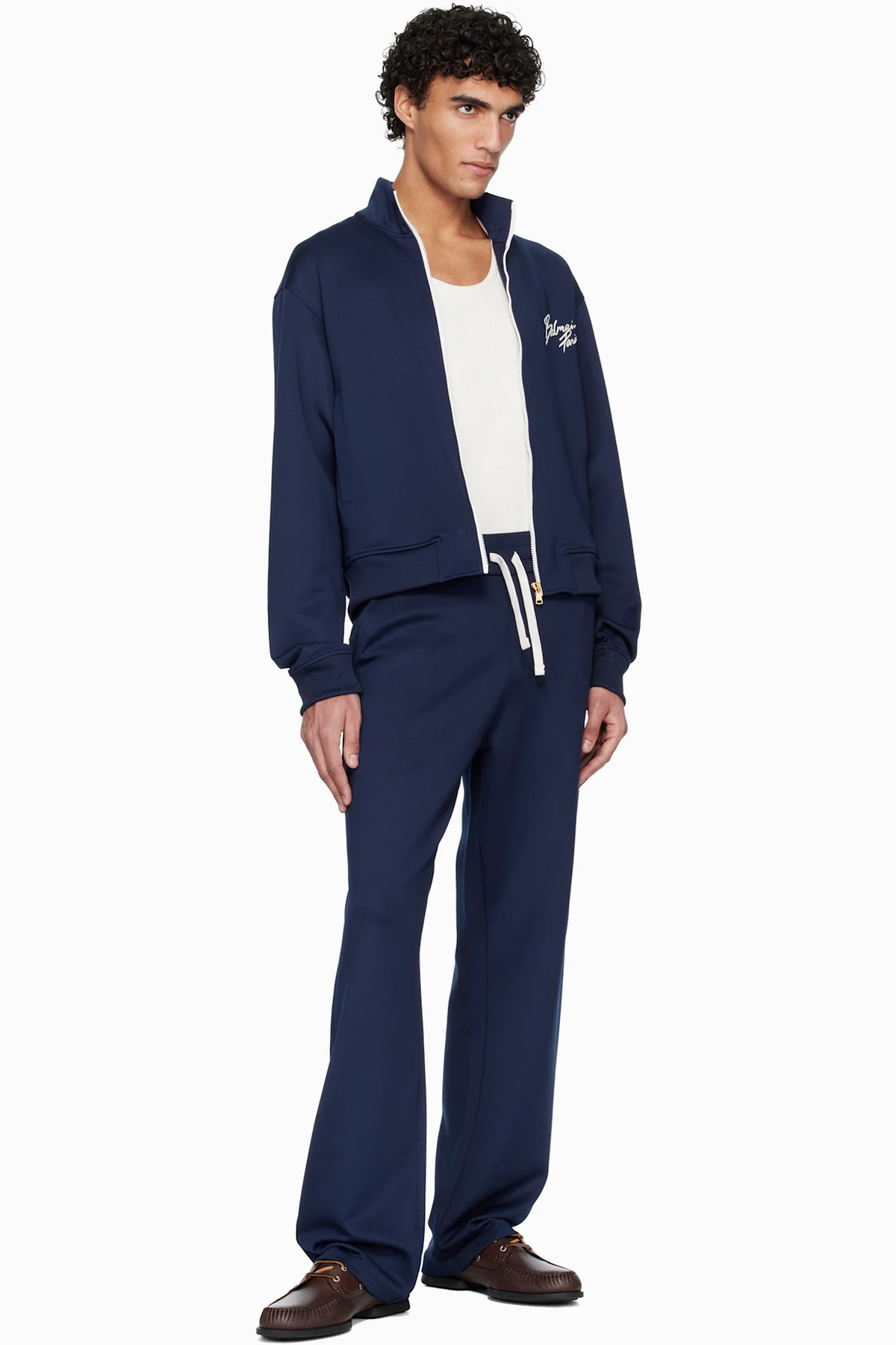 Navy Polyester Pile Sweatpants