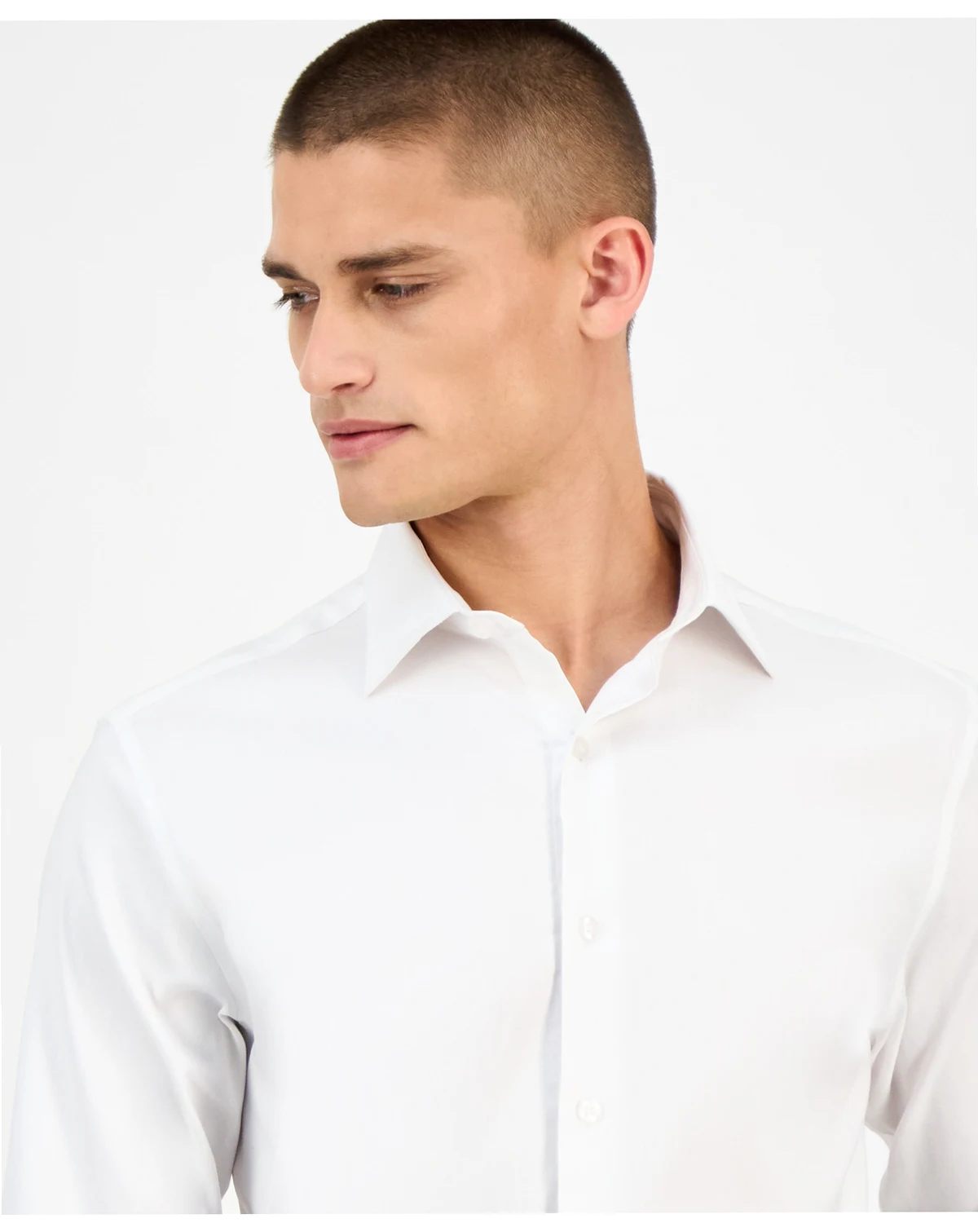 Stride into your next event with confidence and finesse when you build your ensemble around this slim-fit herringbone dress shirt from Alfani®.