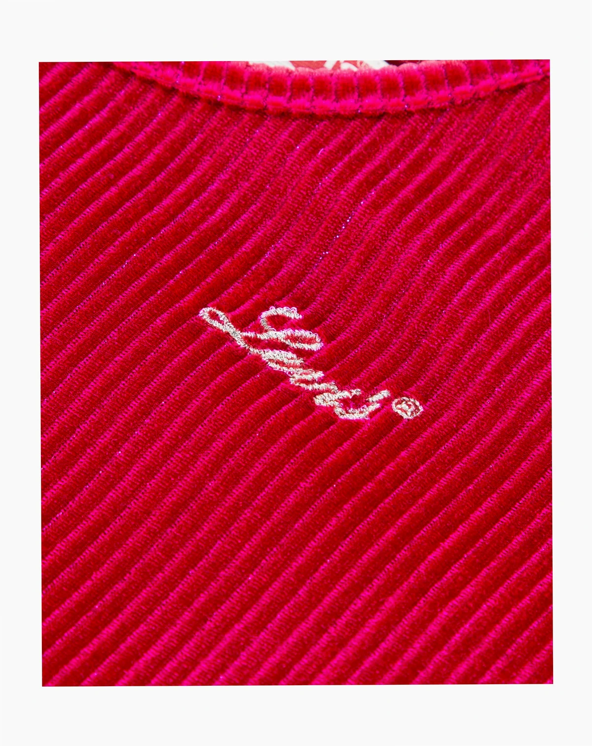 Perfect for casual layering, mixing and matching, or wearing solo, this lovely Levi's set blends soft comfort with festive mood. Crafted from soft, ribbed velour knit fabric, this cozy set will surely become a cherished favorite.