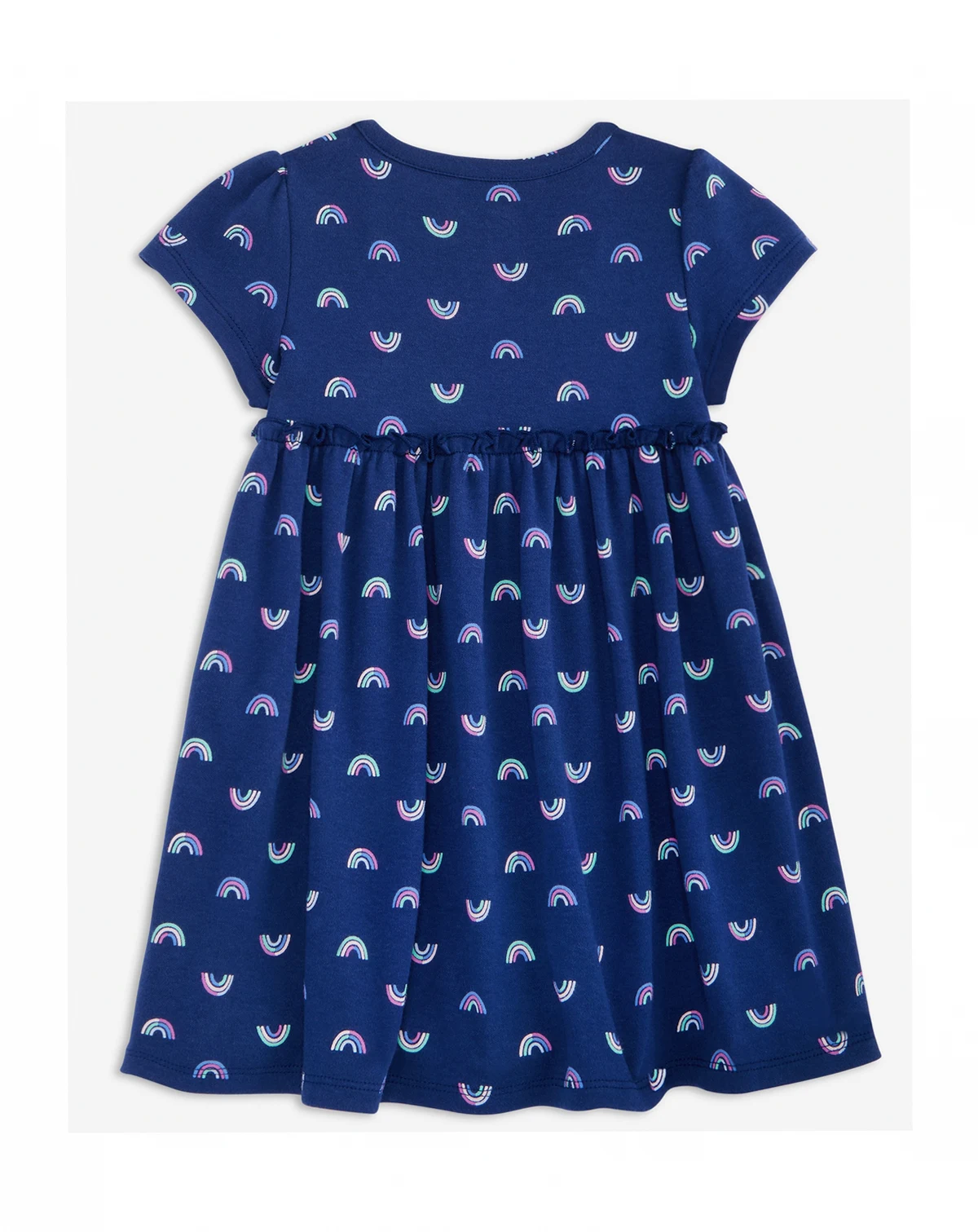 Brighten her day with this rainbow print pull-on mini dress from First Impressions, featuring a cheerful all-over pattern. A crewneck and short sleeves provide a classic and comfortable silhouette for active toddlers.