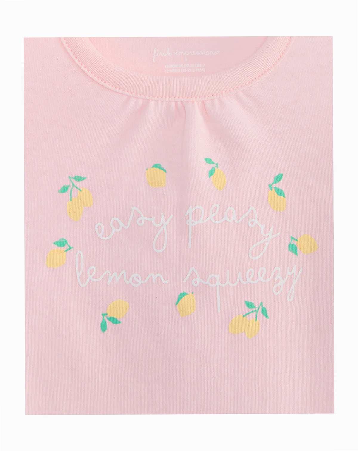 Super-sweet details like a lemon-themed graphic print and flutter sleeves add adorable style to this comfy T-shirt from First Impressions.