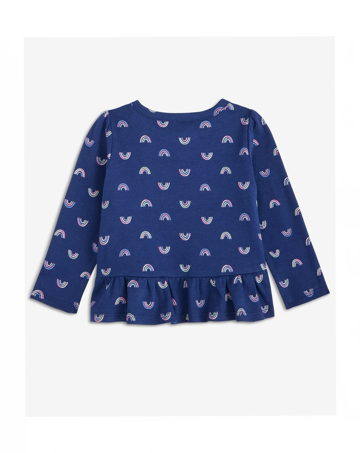 Super sweet, this long-sleeve T-shirt from First Impressions features a fun mini rainbow print and a ruffled hem.