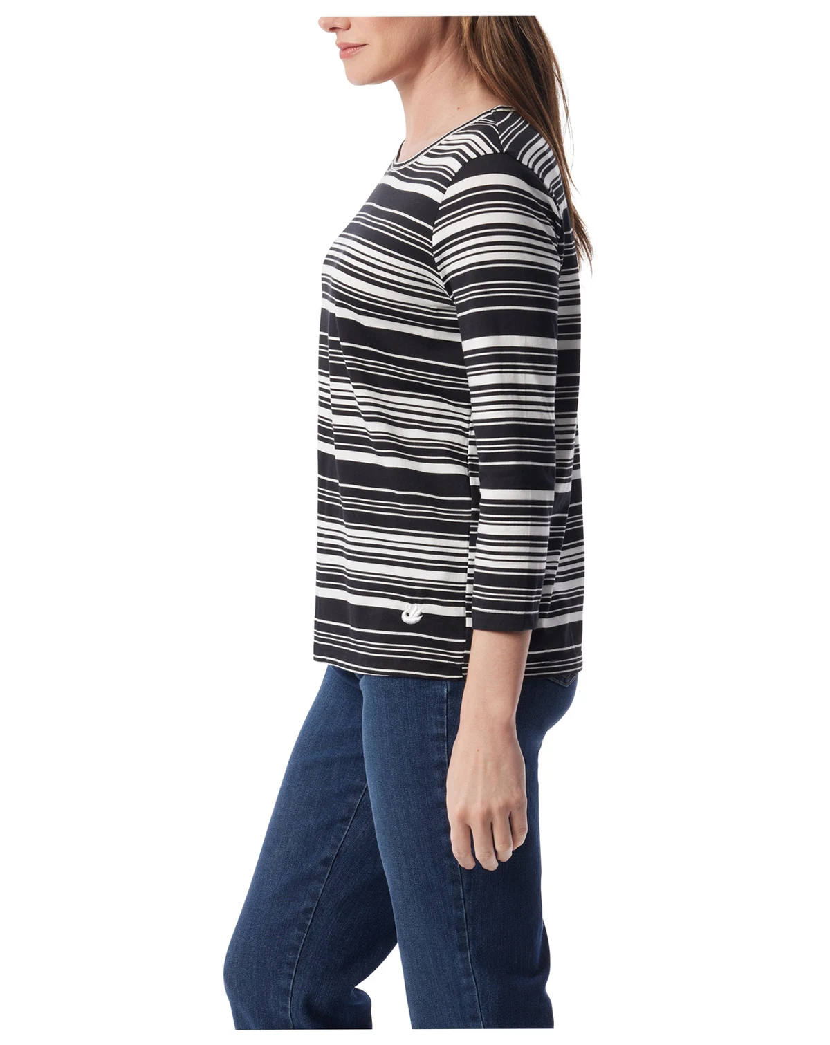 Add effortless ease to your day with this Gloria Vanderbilt Amanda knit top, designed with a simple crew neck and easy pull on fit. A swan embroidery detail and clean hem create a polished finish, while 3/4-sleeves provide balance coverage and breathability.