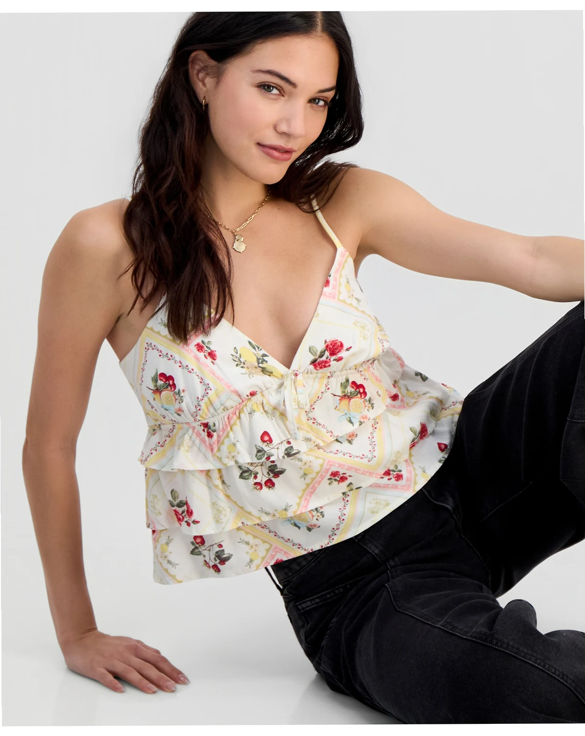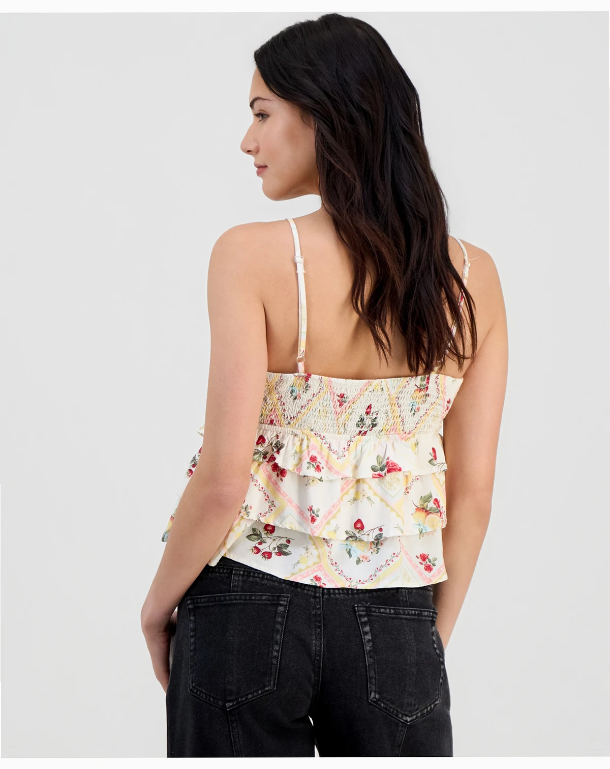 Standing out with contrasting stripes, tiers of ruffles bring a playful whimsy to Madden Girl's cropped sleeveless top, making it the perfect compliment to your favorite jeans.
