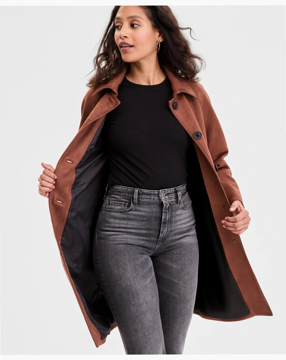 BCBGMAXAZRIA puts fashion in focus with this gorgeous coat designed in soft, sleek faux suede.