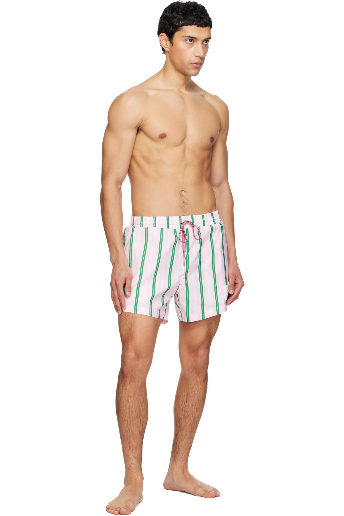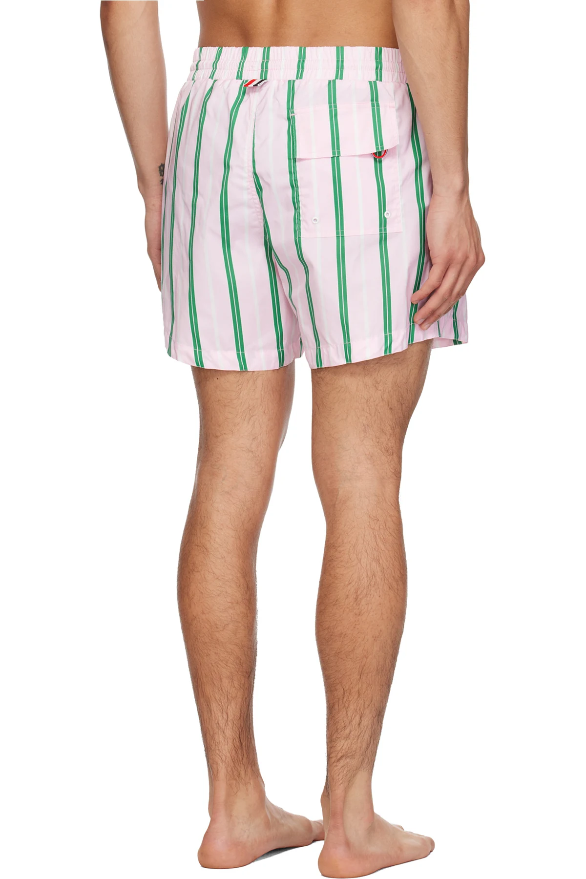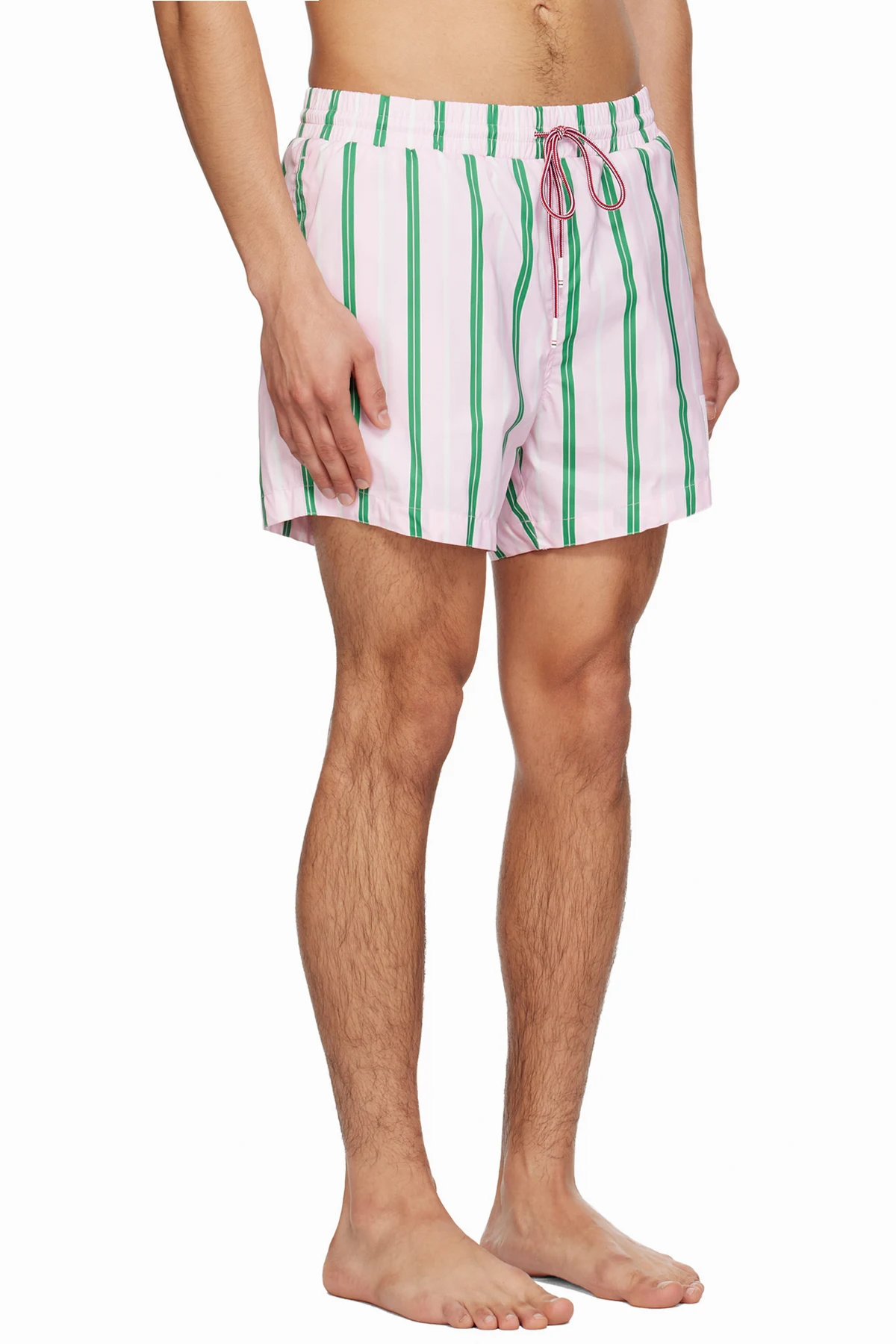 Pink Drawcord Waist Stripe Print Swim Shorts