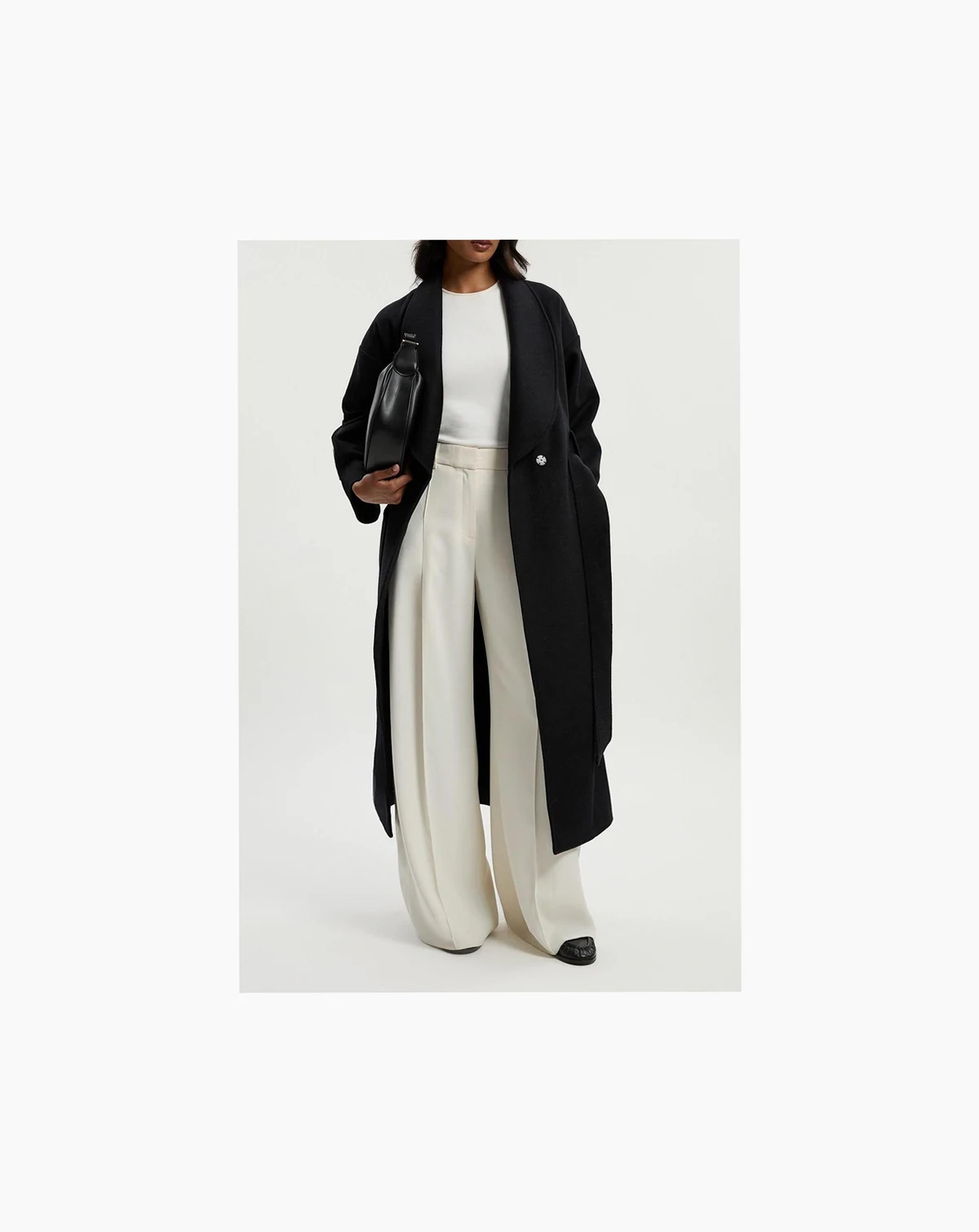 This Karen Millen Petite Brushed Wool Belted Wrap Coat embodies refined daywear with its tailored silhouette and sumptuous texture. The wrap design creates a feminine shape that can be adjusted to your preference, whilst the maxi length delivers both drama and practicality for the cooler seasons. Style with slim-fitting trousers and a simple top as shown for a balanced silhouette, or layer over a fine knit jumper and straight-leg jeans for weekend sophistication.
