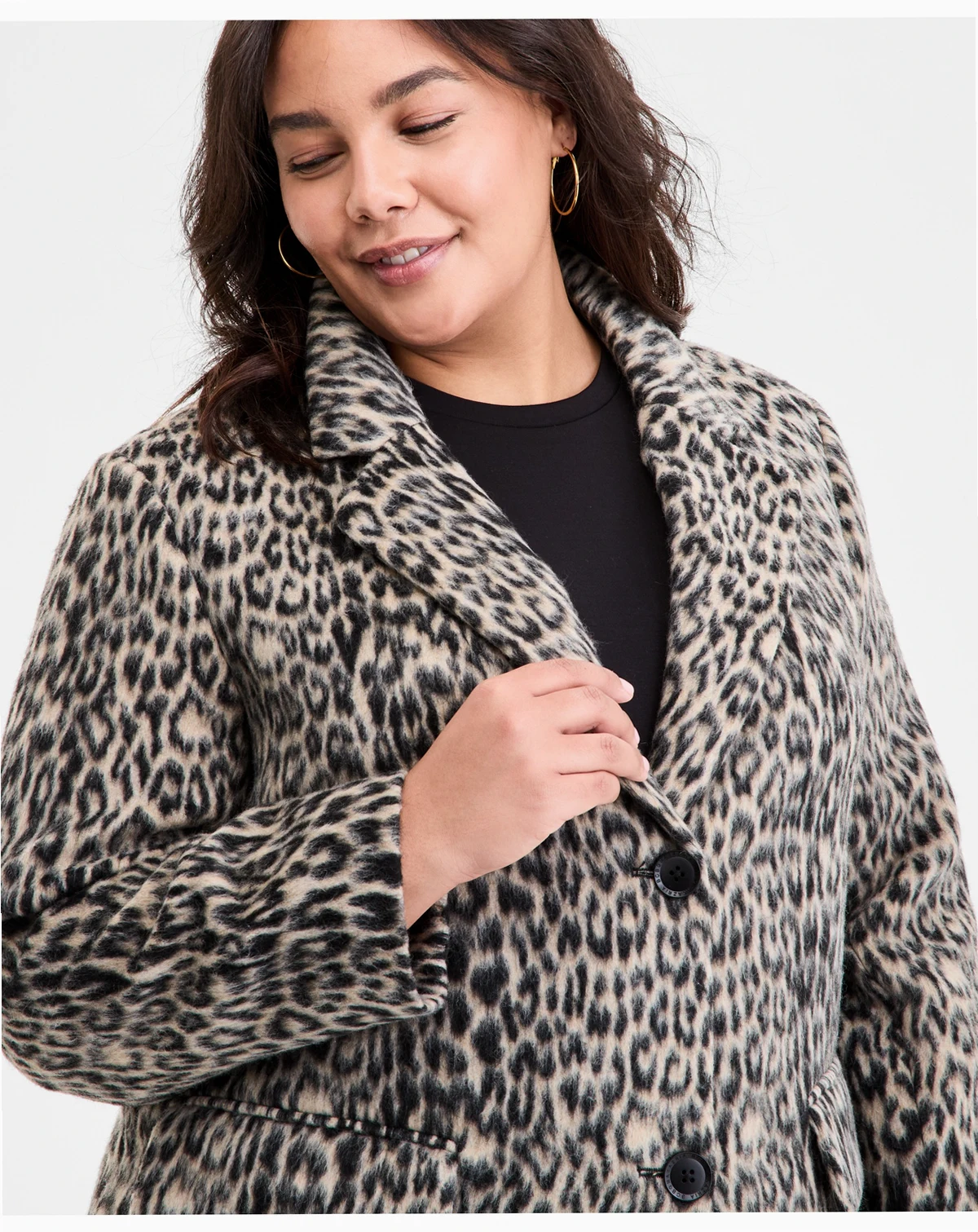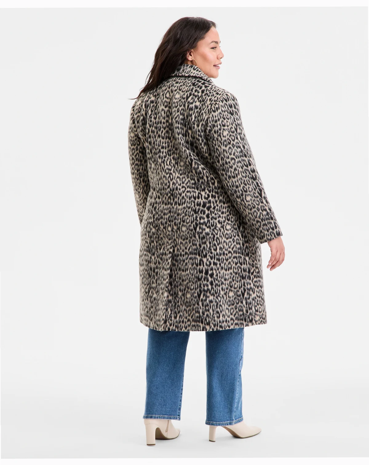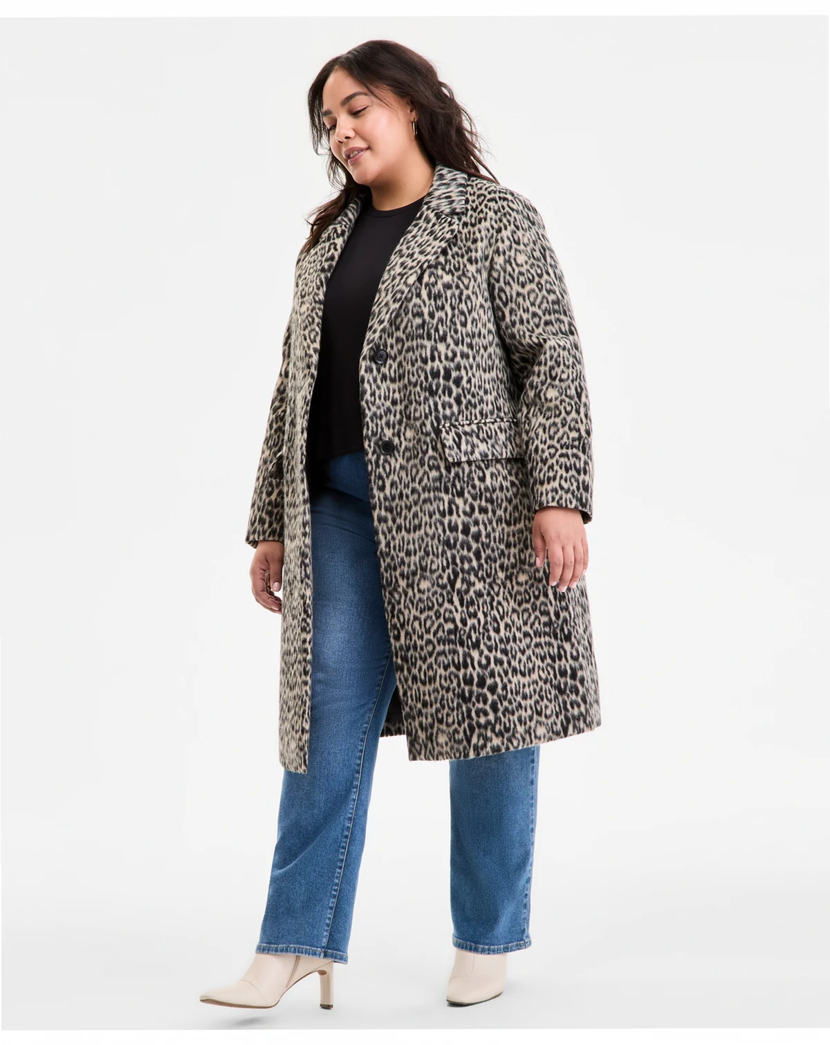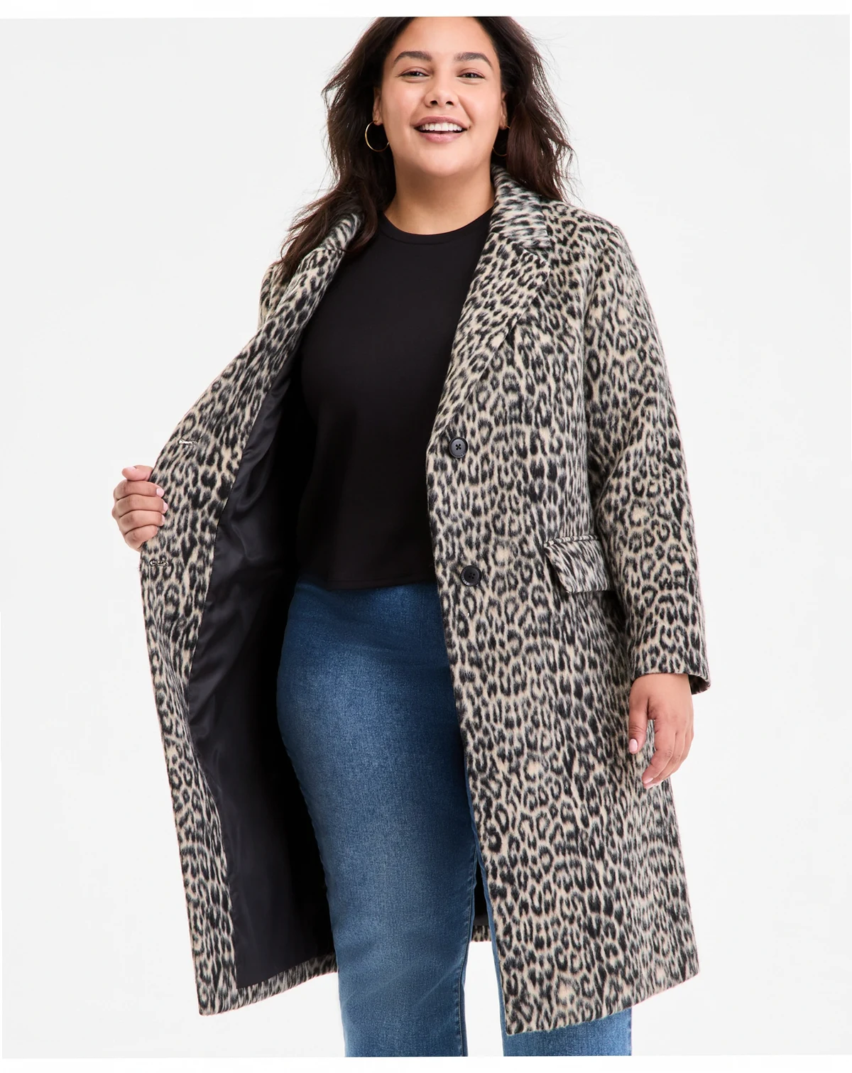 BCBGMAXAZRIA's plus size coat is a playful addition to your cold-weather collection designed with two flap pockets and a classic notched collar.