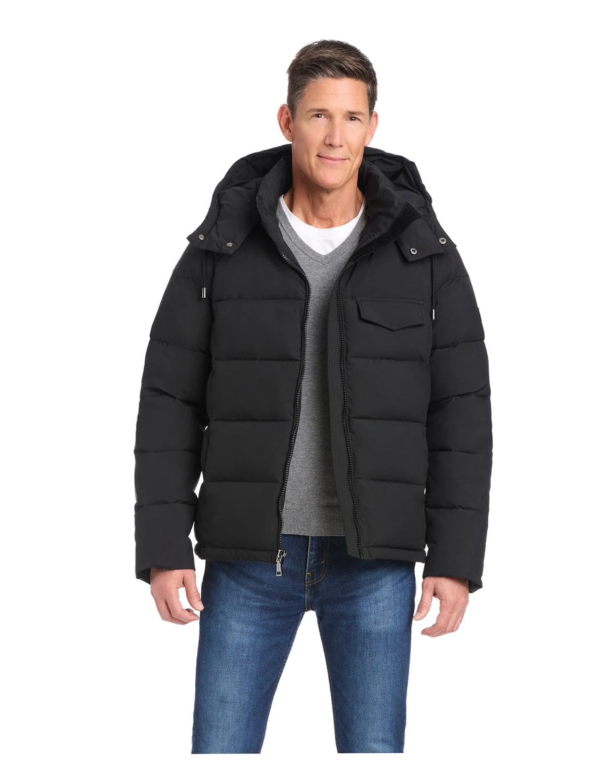 Engineered for cold-weather versatility, this Vince Camuto ultra-stretch puffer jacket offers dependable protection against wind and water. A removable hood and functional pockets provide tailored coverage and everyday convenience. ABOUT THE BRAND: Vince Camuto is a globally renowned brand that embodies European styling. Detailed craftsmanship across the line embraces current trends while maintaining a classic aesthetic.