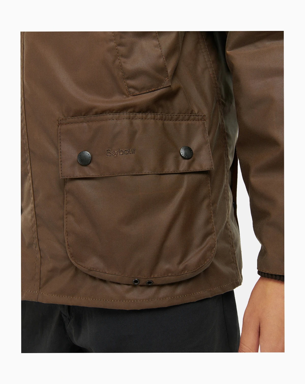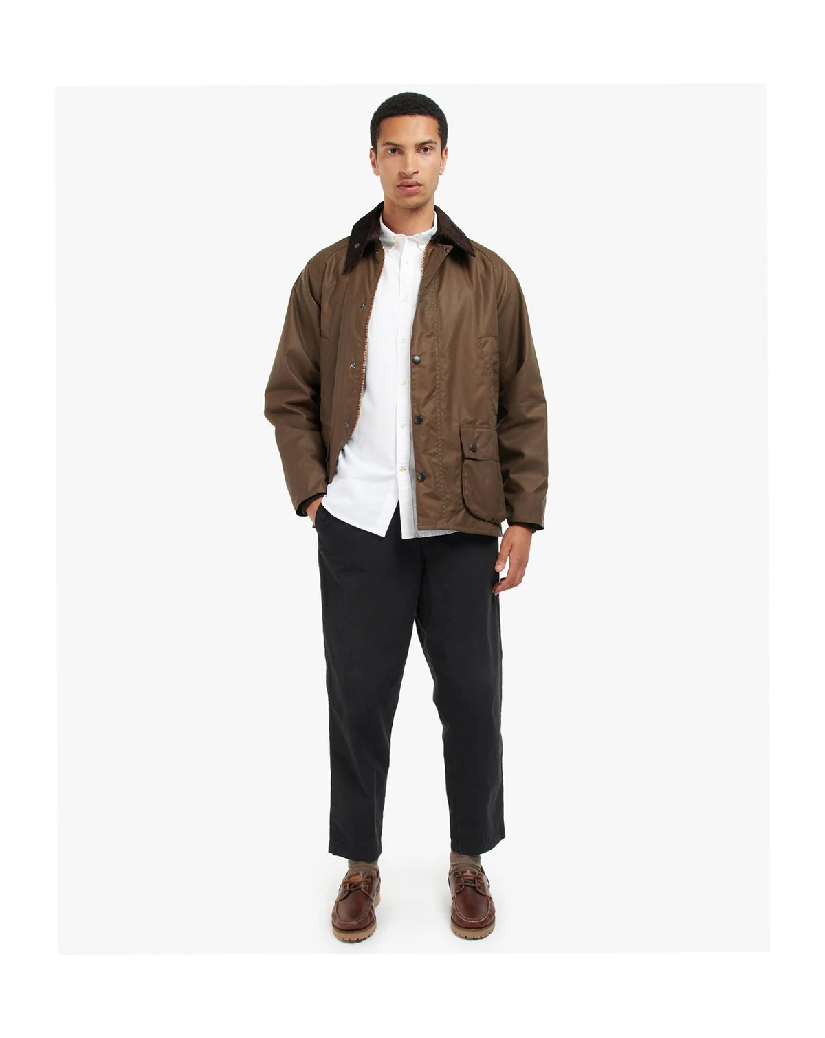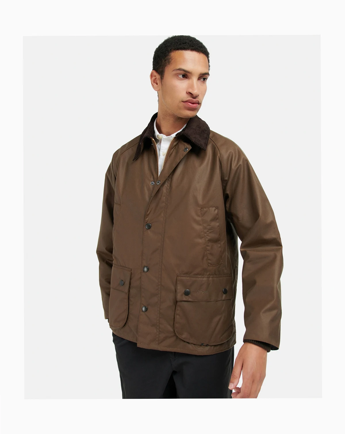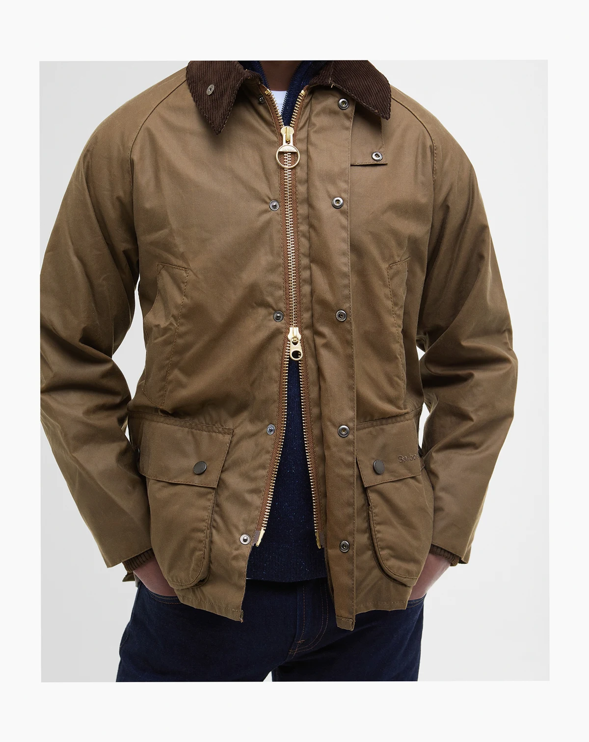 The Bedale jacket from Barbour is designed in water-resistant waxed cotton and finished with ribbed inner cuffs for added warmth.