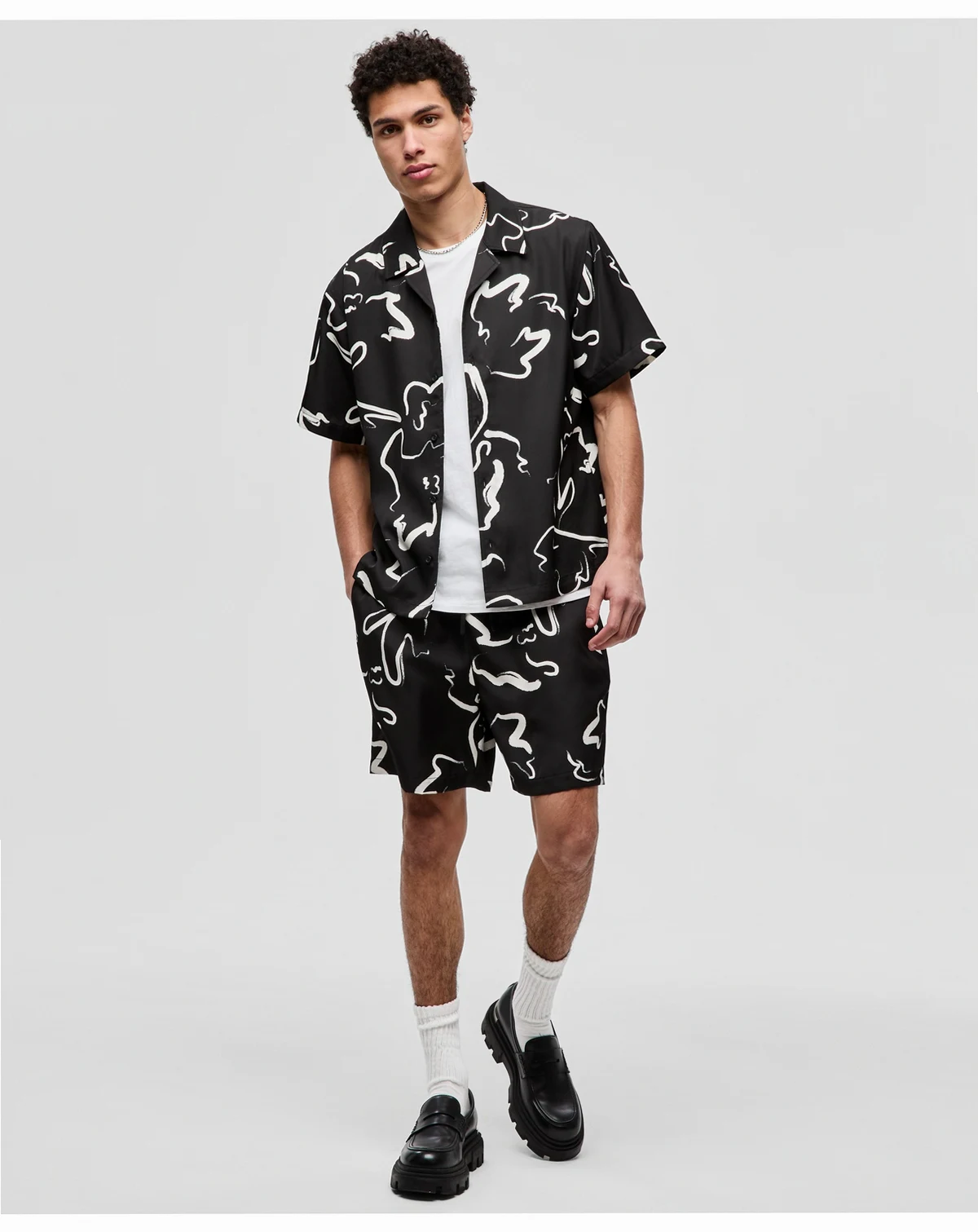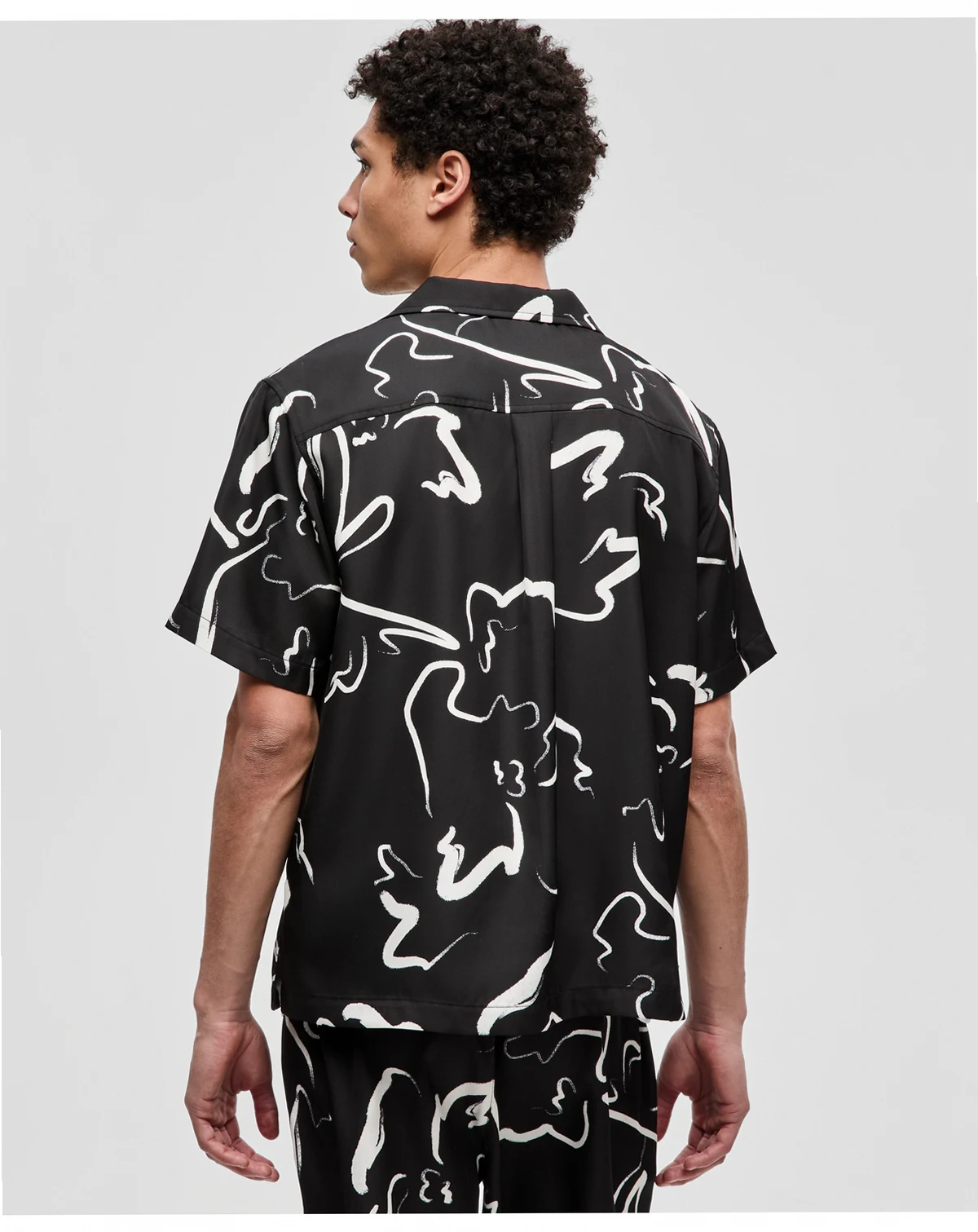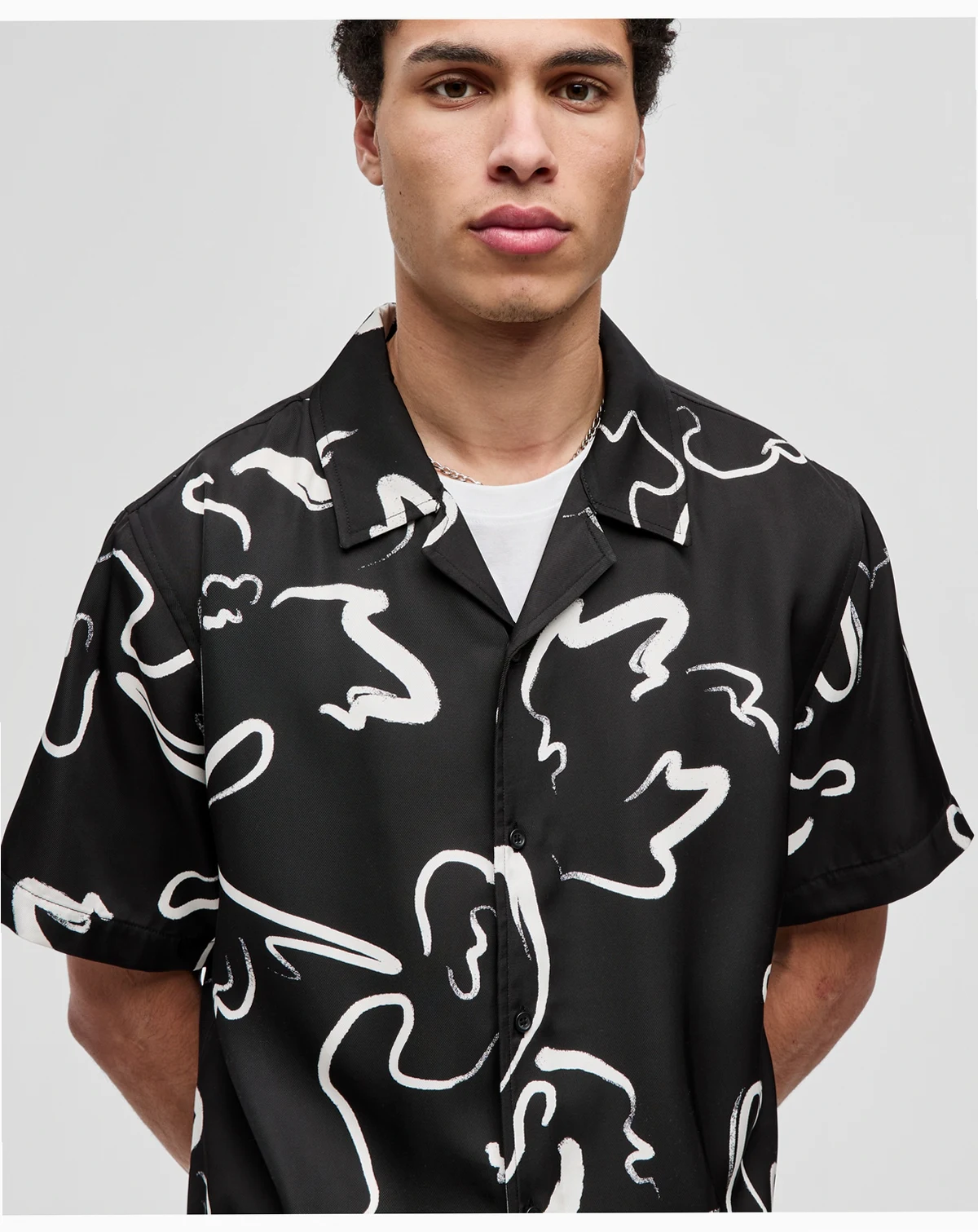 Sleek in shiny twill, this fresh look from Mode of One updates the camp shirt with a relaxed fit and bold contemporary print. ABOUT THE BRAND: Mode of One is designed for the individual who sees style as a powerful tool for self-expression.