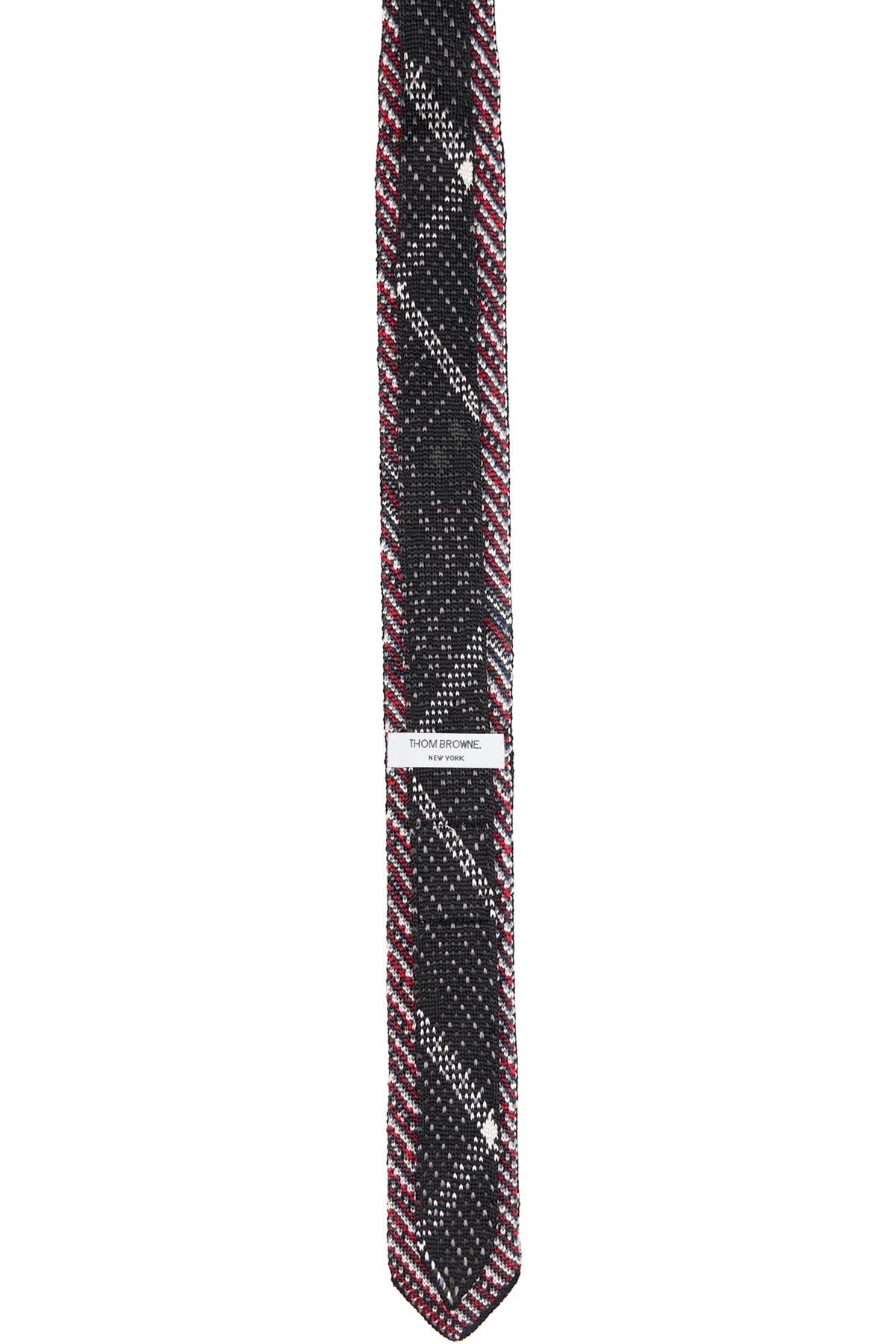 Black Plaid Check Silk Knit RWB Tie