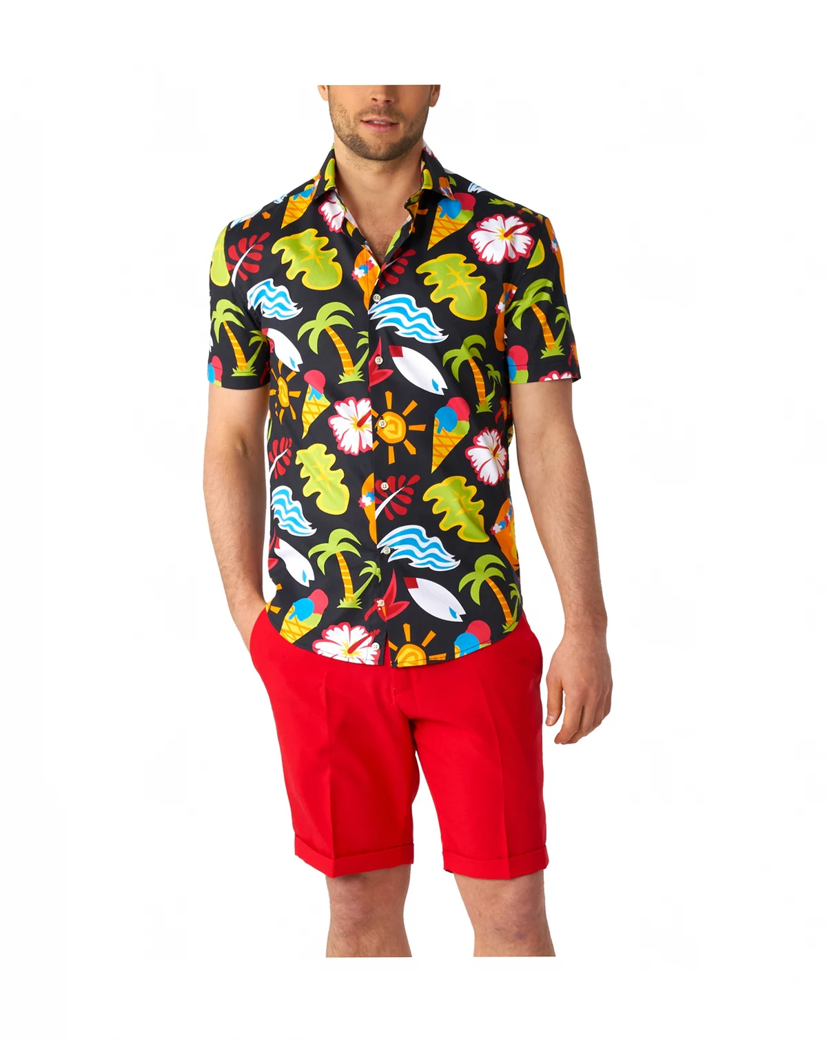 OppoSuits Men's Short Sleeve Tropical Thunder Shirt - Tropical Party Shirt - Summer Theme - Multicolor