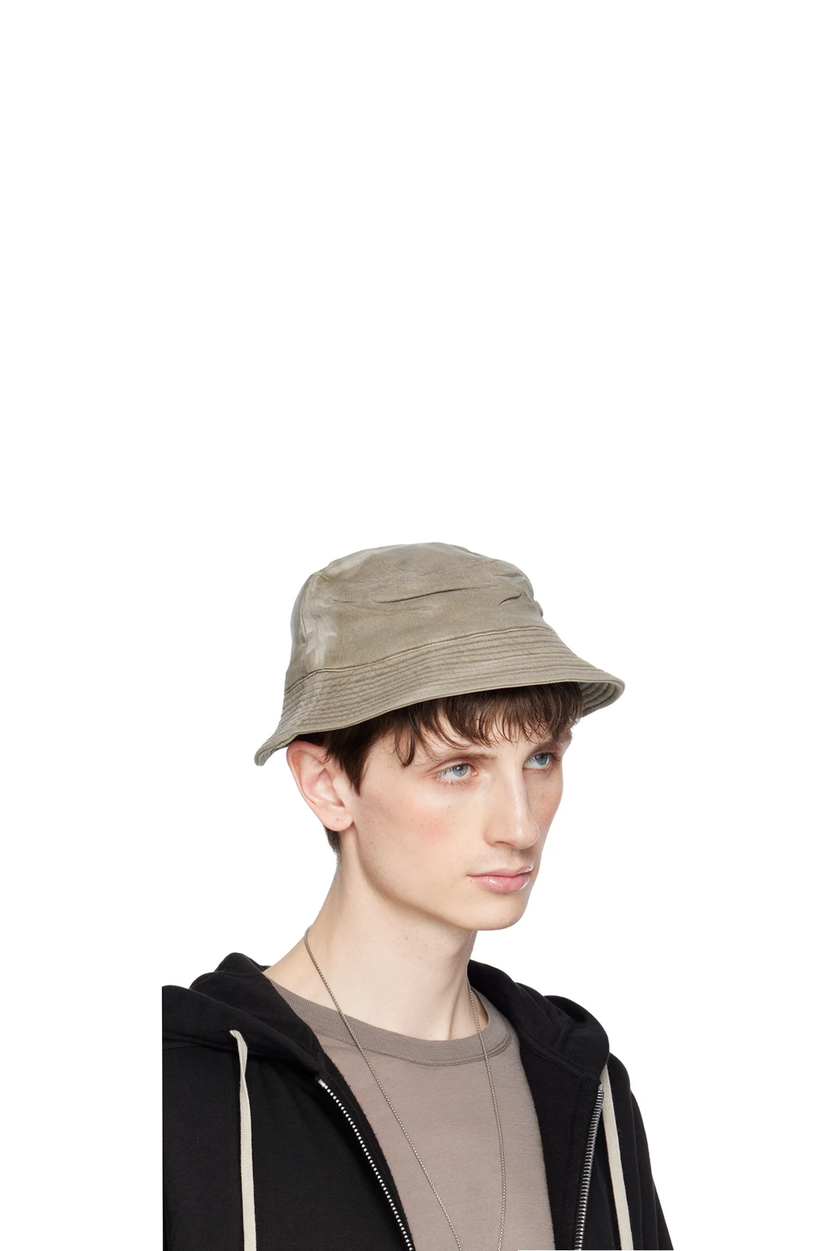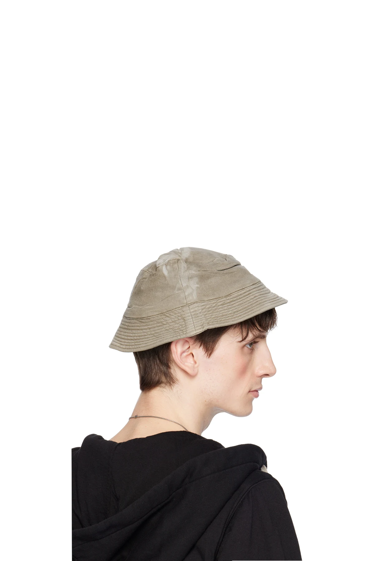 Lightweight over-dyed coated stretch denim bucket hat in off-white.