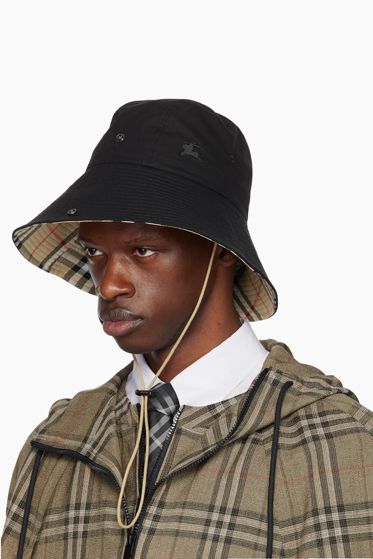Water-resistant cotton twill bucket hat in black.