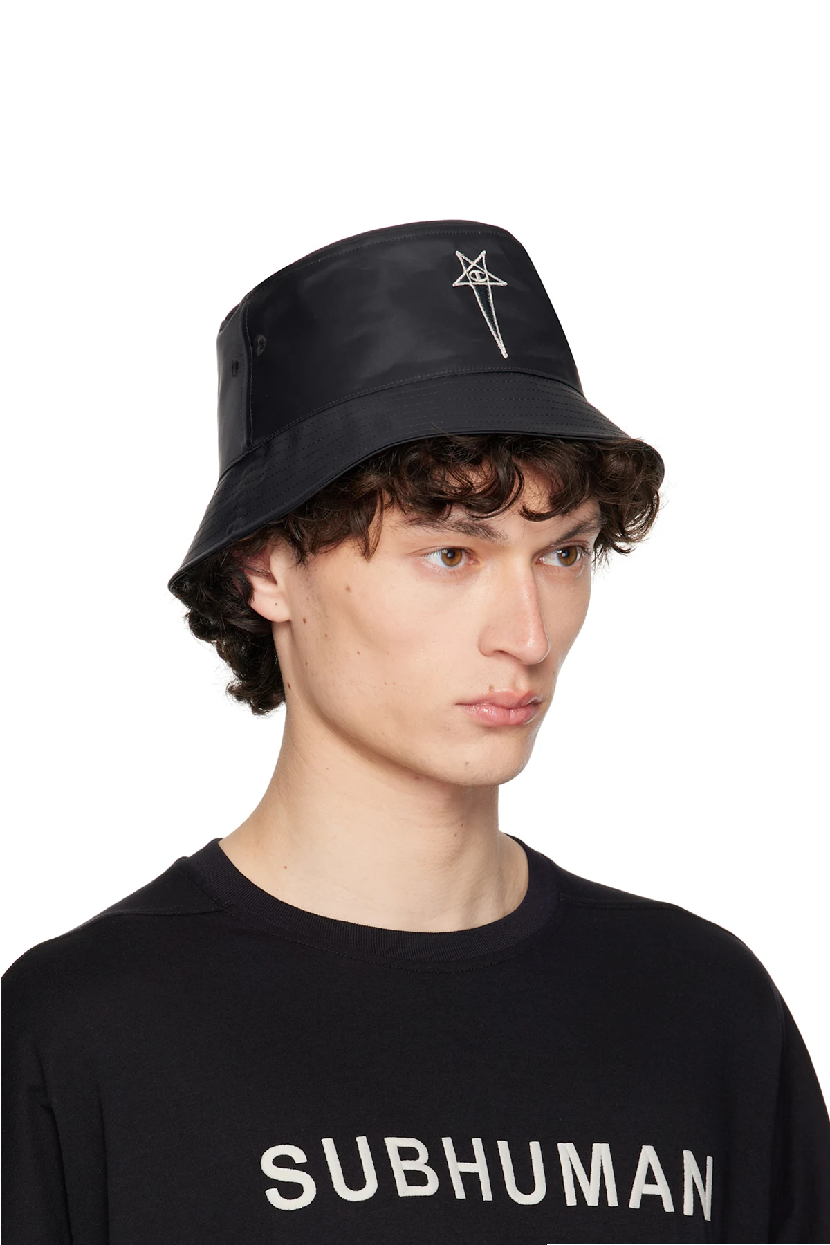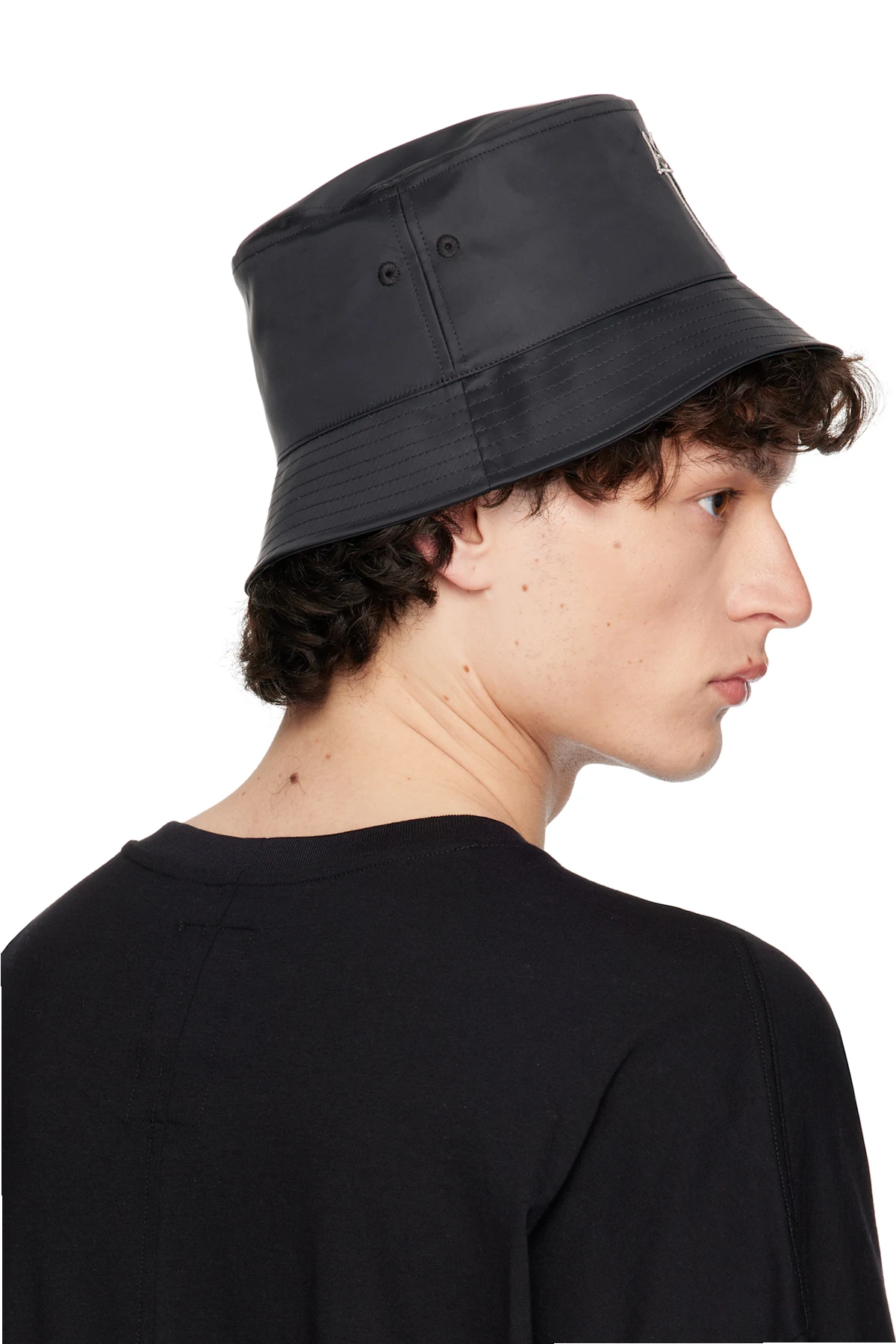 Nylon satin bucket hat in black.