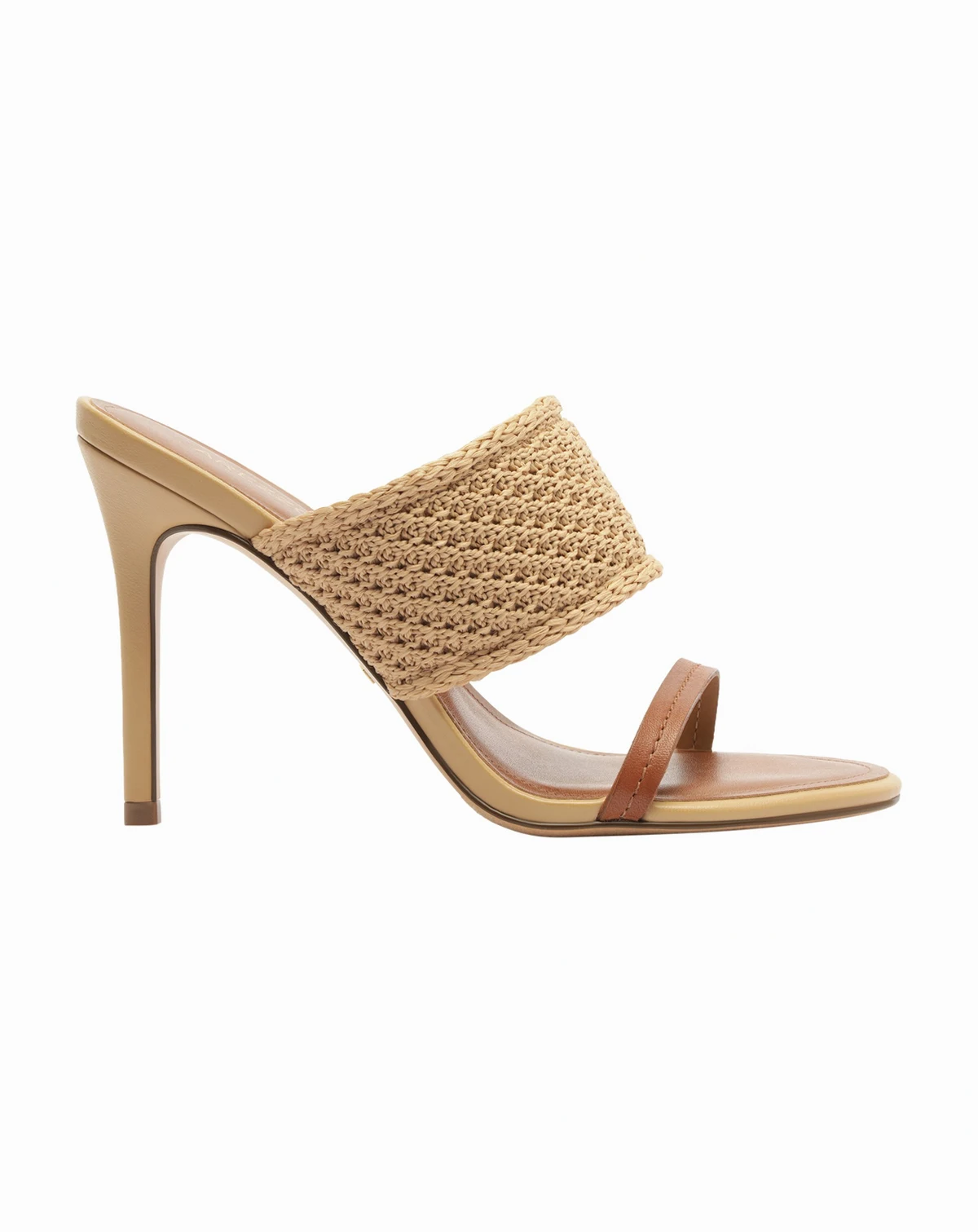 Your looks deserve the Sylvia High Stiletto Sandal. With a bold woven strap and sleek stiletto heel, it adds texture and elegance to any outfit—pair it with wide-leg trousers for a standout finish.