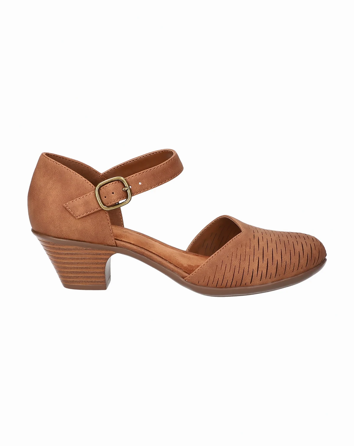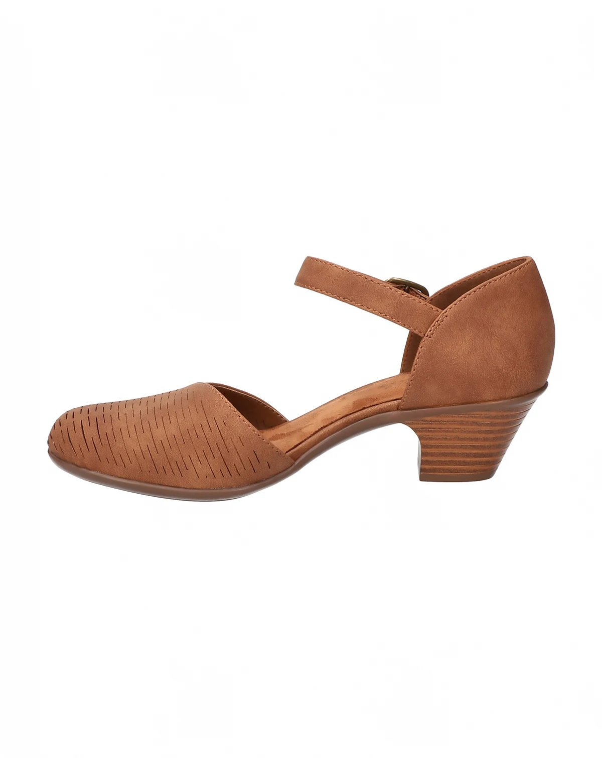 Add a touch of contemporary fashion to your wardrobe with the stylish Justina by Easy Street. The unique slash chop-out design and low stacked heel offer the perfect mix of trendy and timeless fashion, making them ideal for any occasion. With an adjustable buckle for a custom fit and a cushioned insole for added comfort.