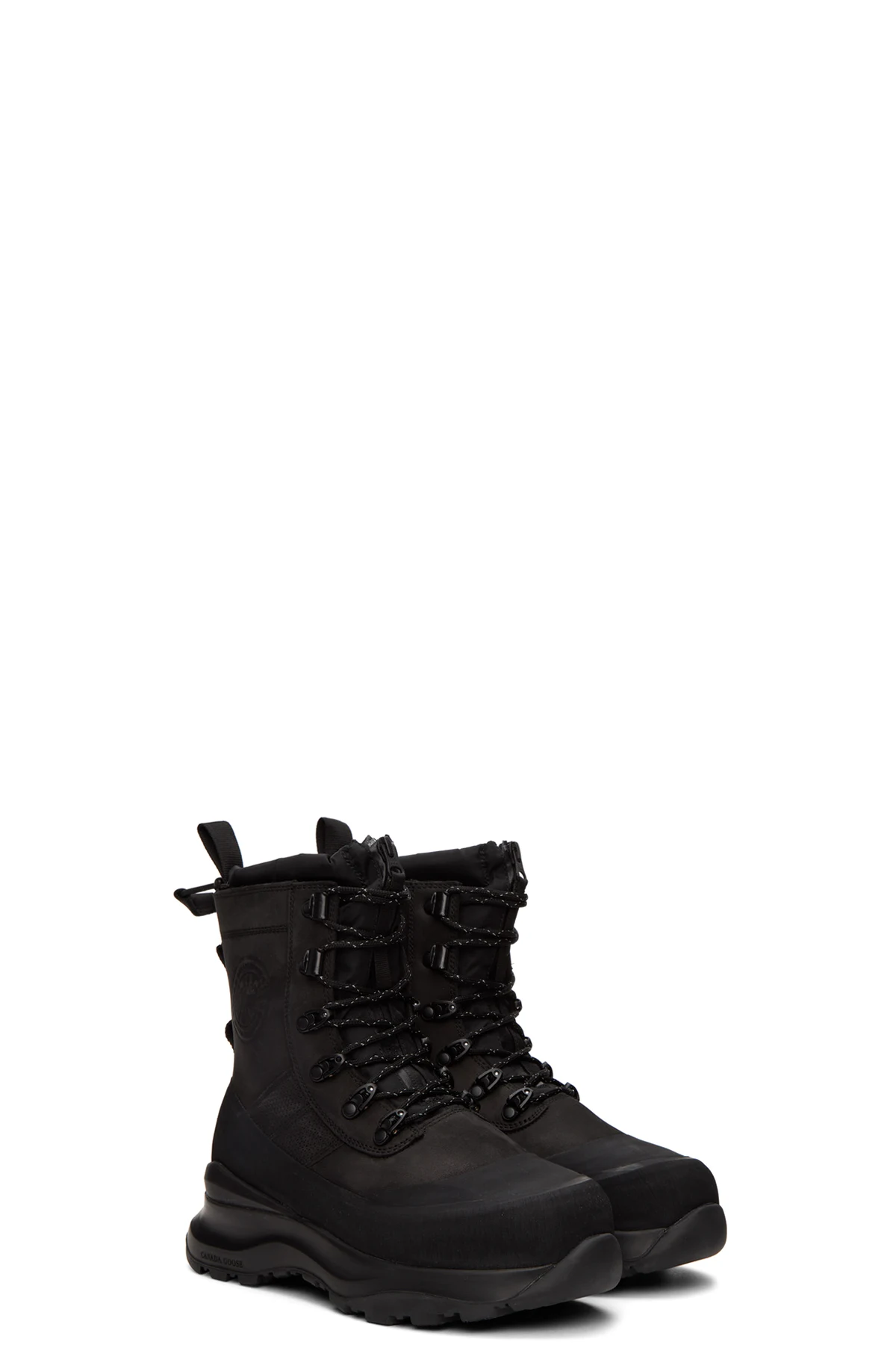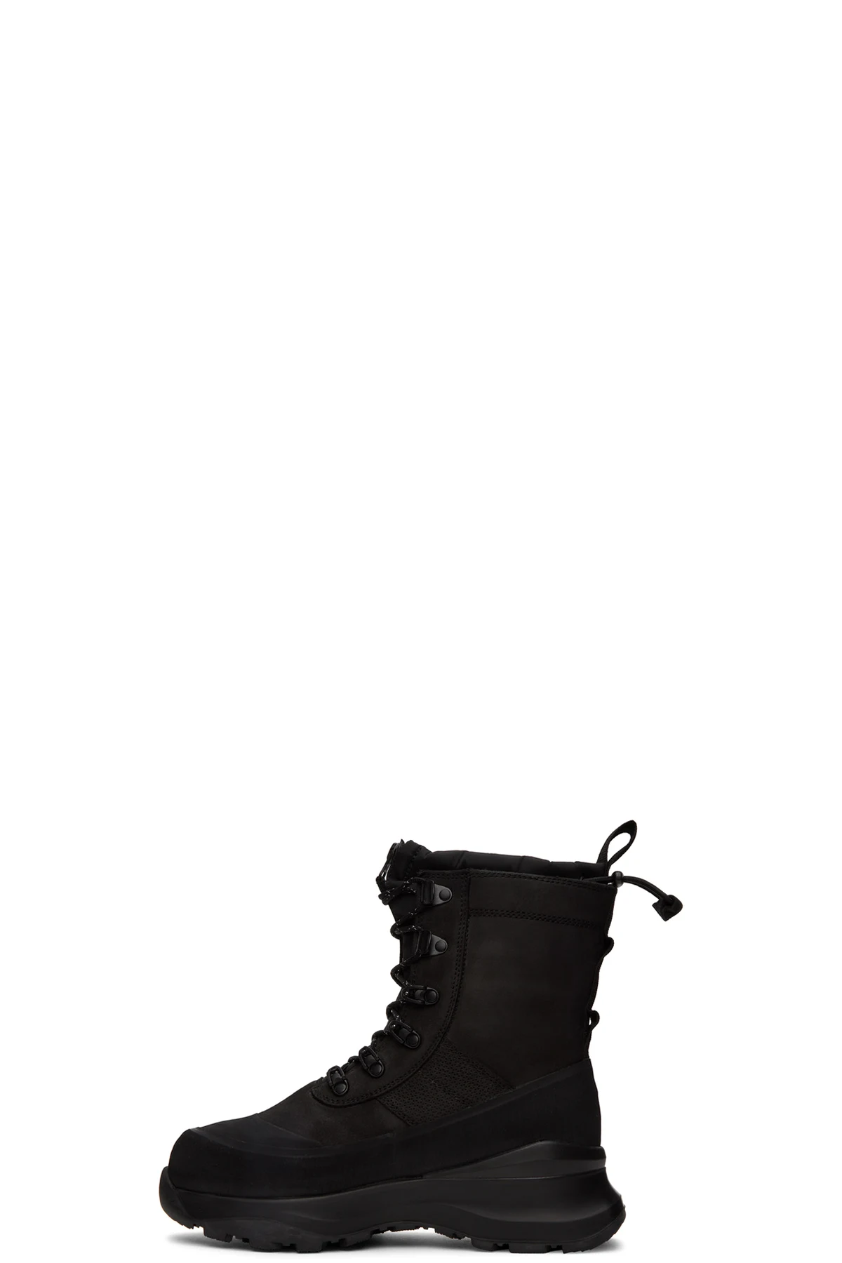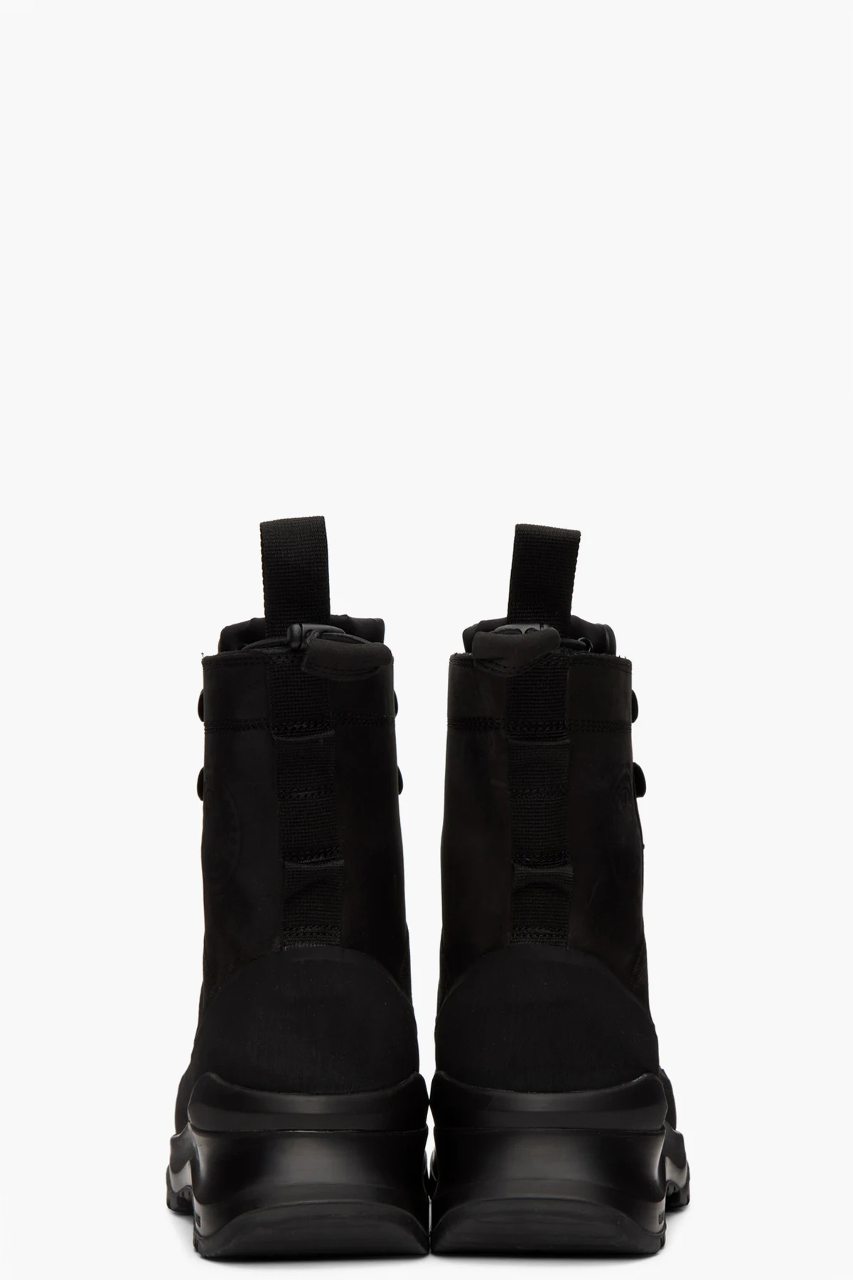 Calf-high paneled HDry® coated suede and nylon taffeta boots in black. Waterproof.