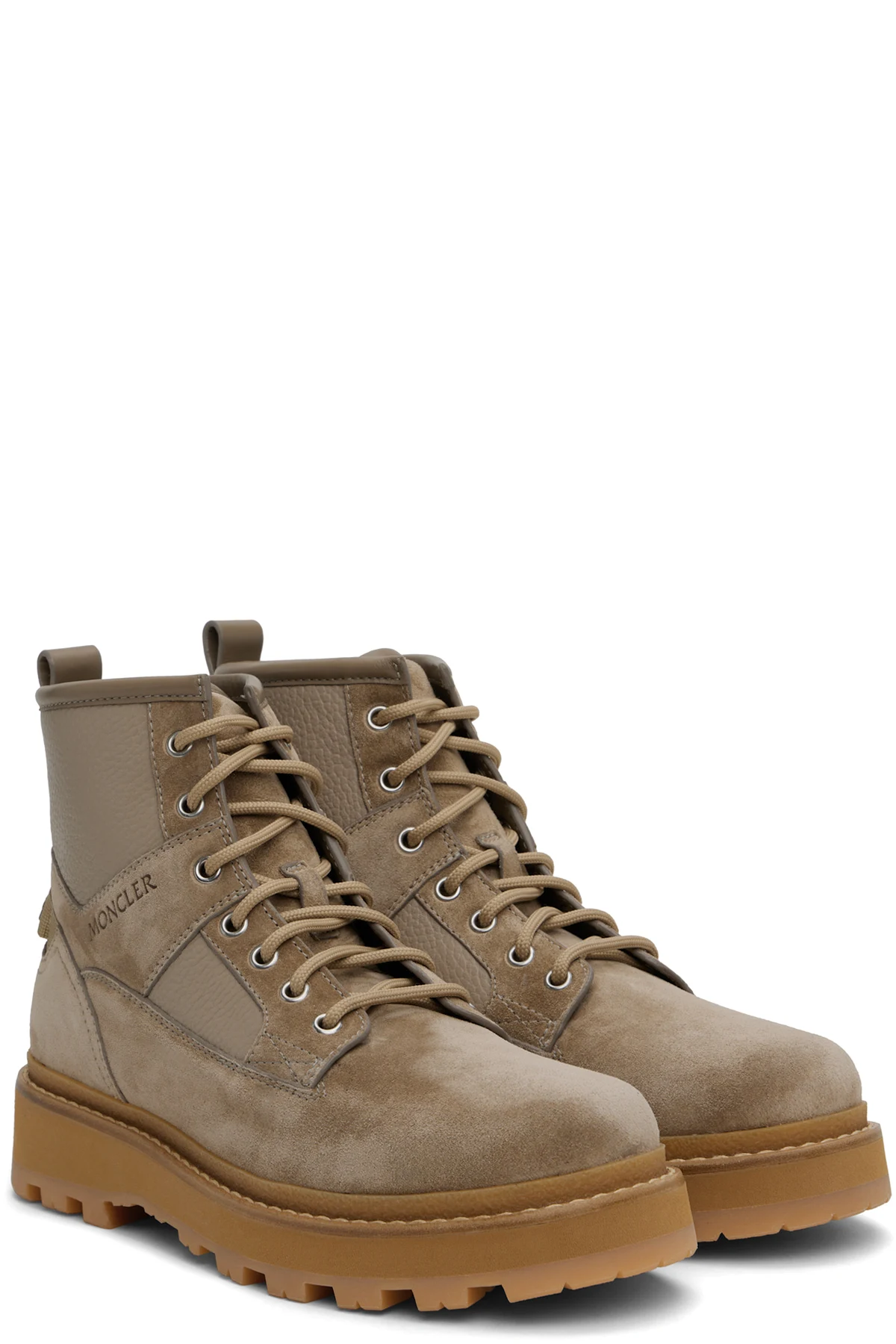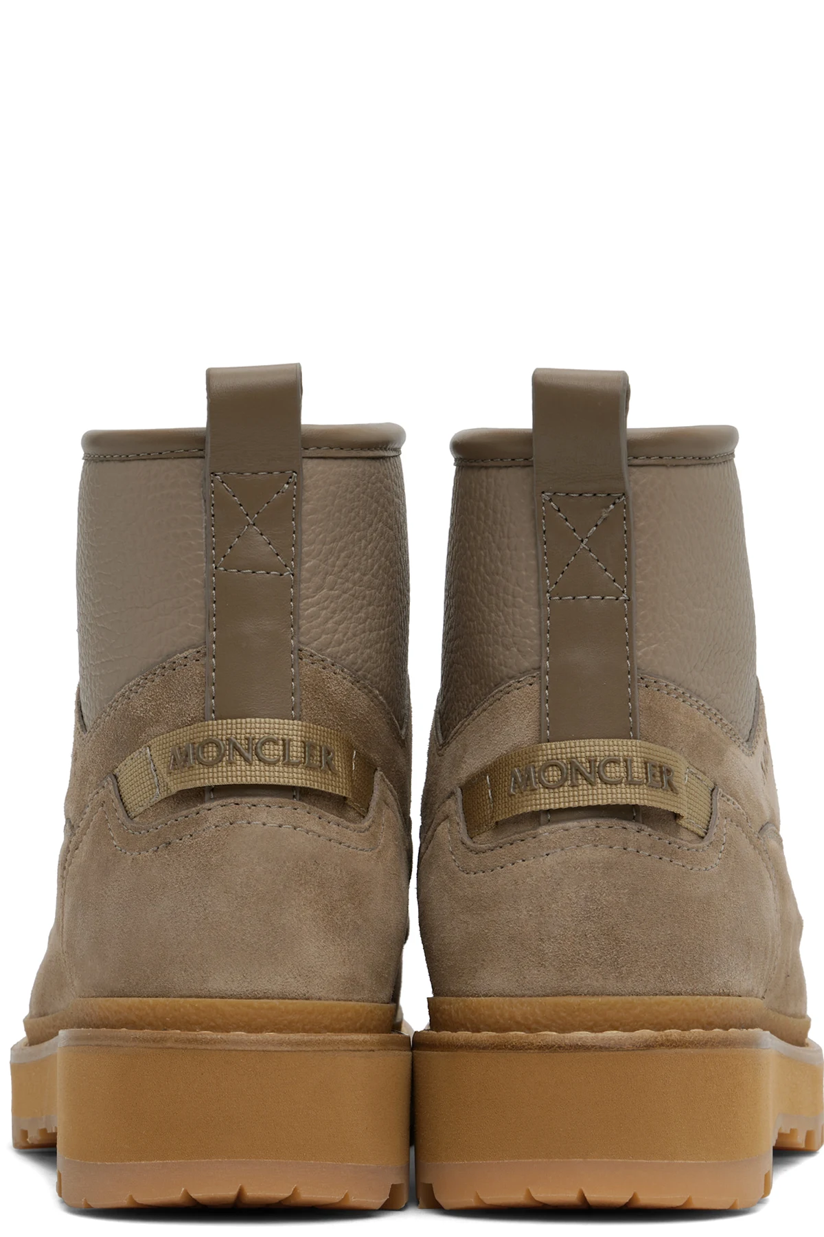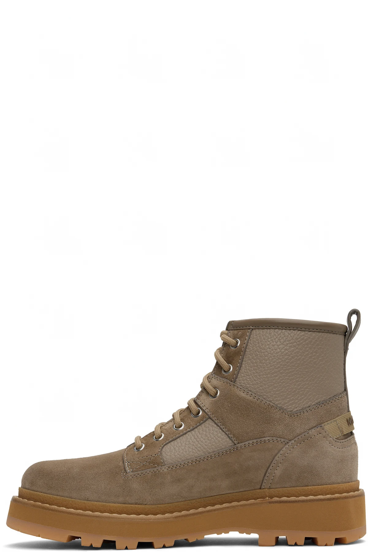 Ankle-high grained leather and nubuck boots in taupe.
