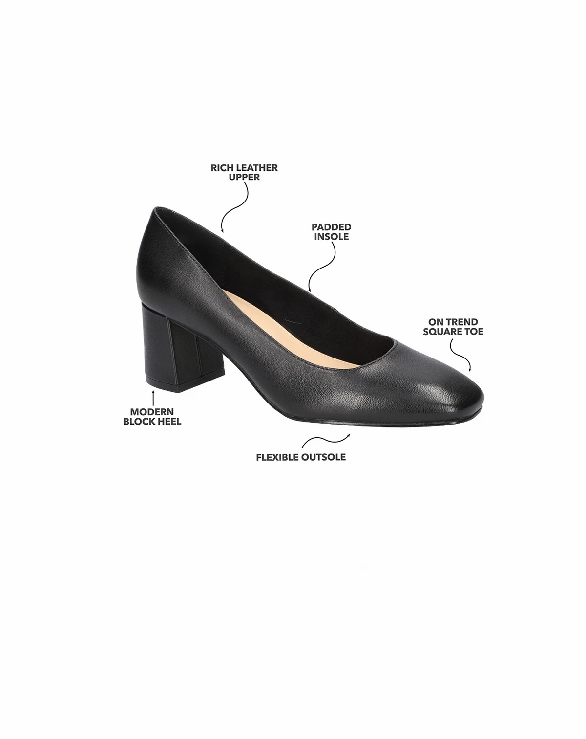 Experience sophistication and style everywhere you go with the Jillian modern block heel pump from Bella Vita. Crafted with a rich leather upper, the new square toe offers a sleek design that embodies timeless fashion. Enhanced with a padded insole for all-day comfort.