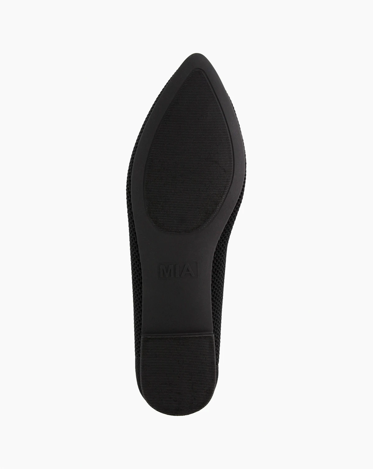 Slip into comfort wearing our CORRINE. Featuring our stretch knit material and pointed toe design, this modern flat silhouette is finished on our unique signature contoured footbed, perfect for all day wear.