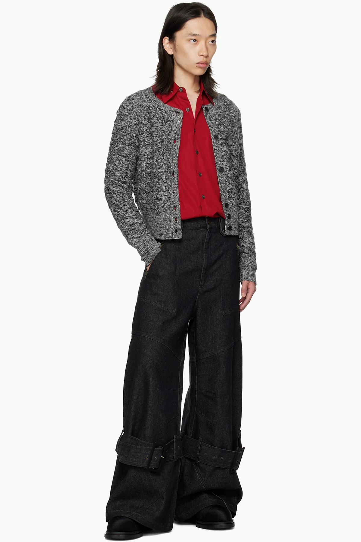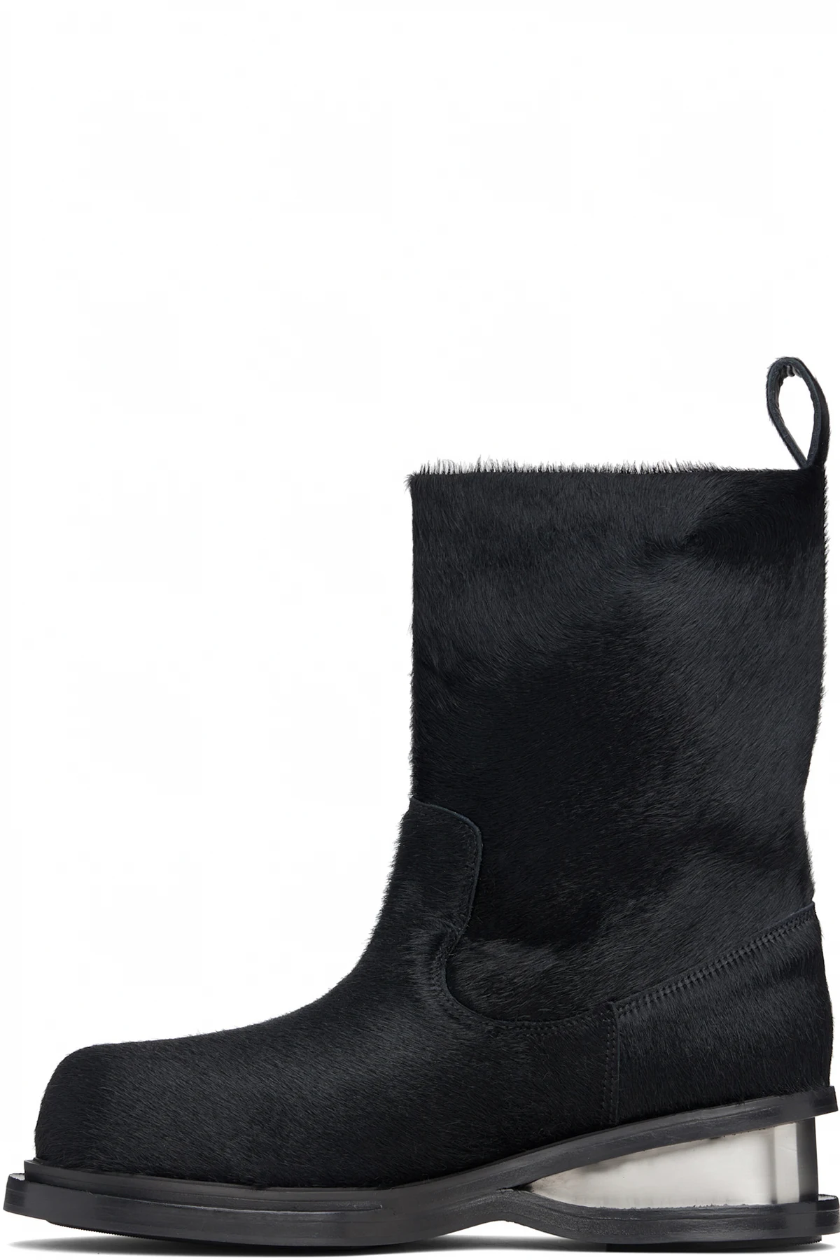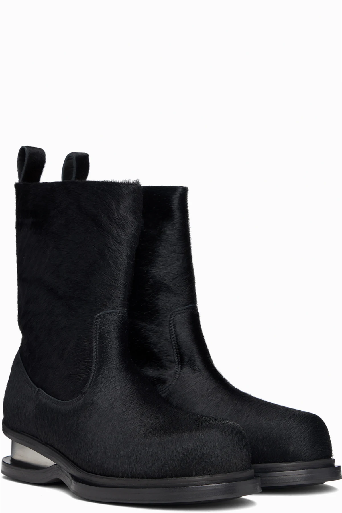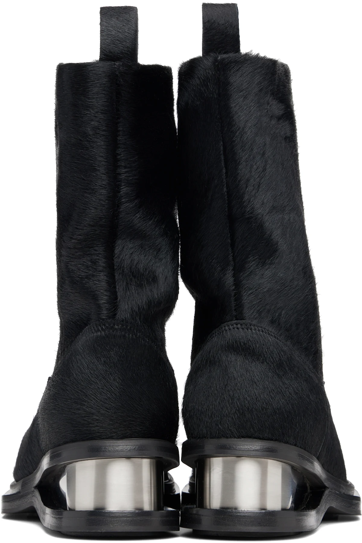 Ankle-high hair-on leather boots.