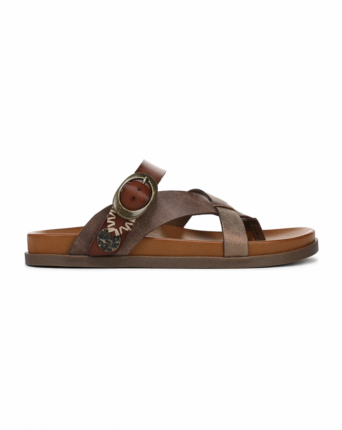 Slide into something new with the Lilac Thong Sandal from Blowfish Malibu. It features a crisscross upper with a decorative buckle and stitched accents. Faux-leather or faux-nubuck upper. Slip on entry. Decorative buckle. Stitched strap accent. 1-inch platform heel.
