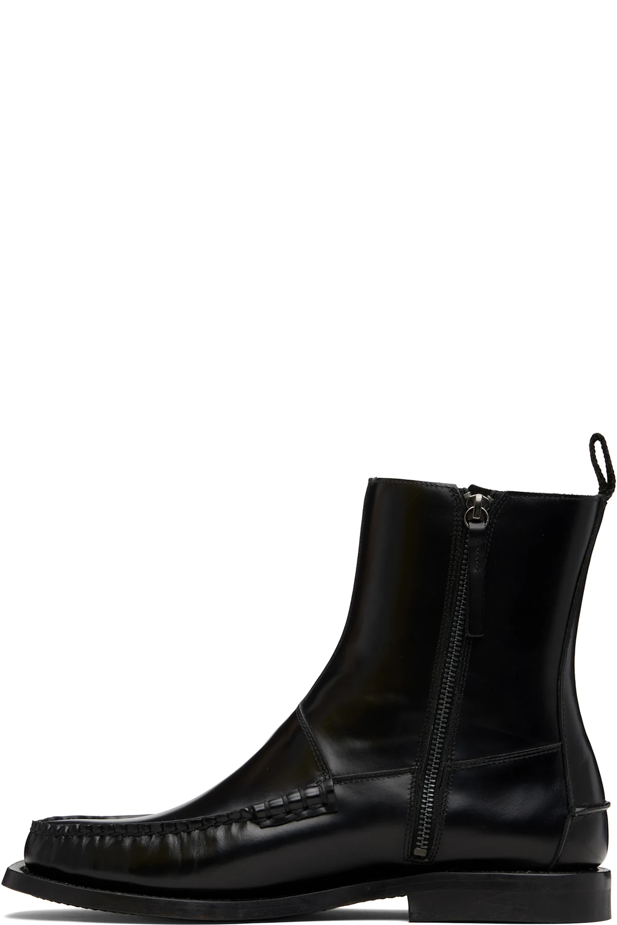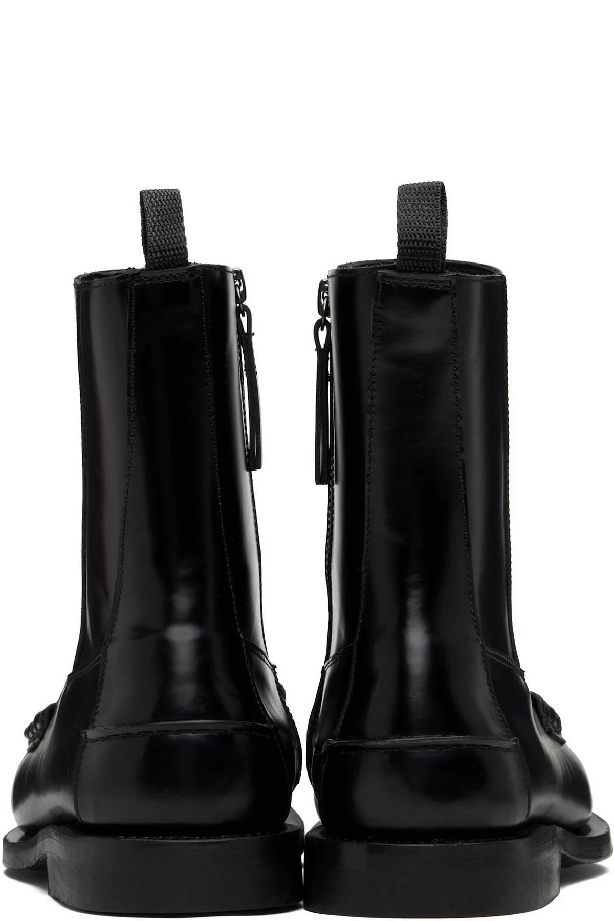 Ankle-high polished calfskin boots.