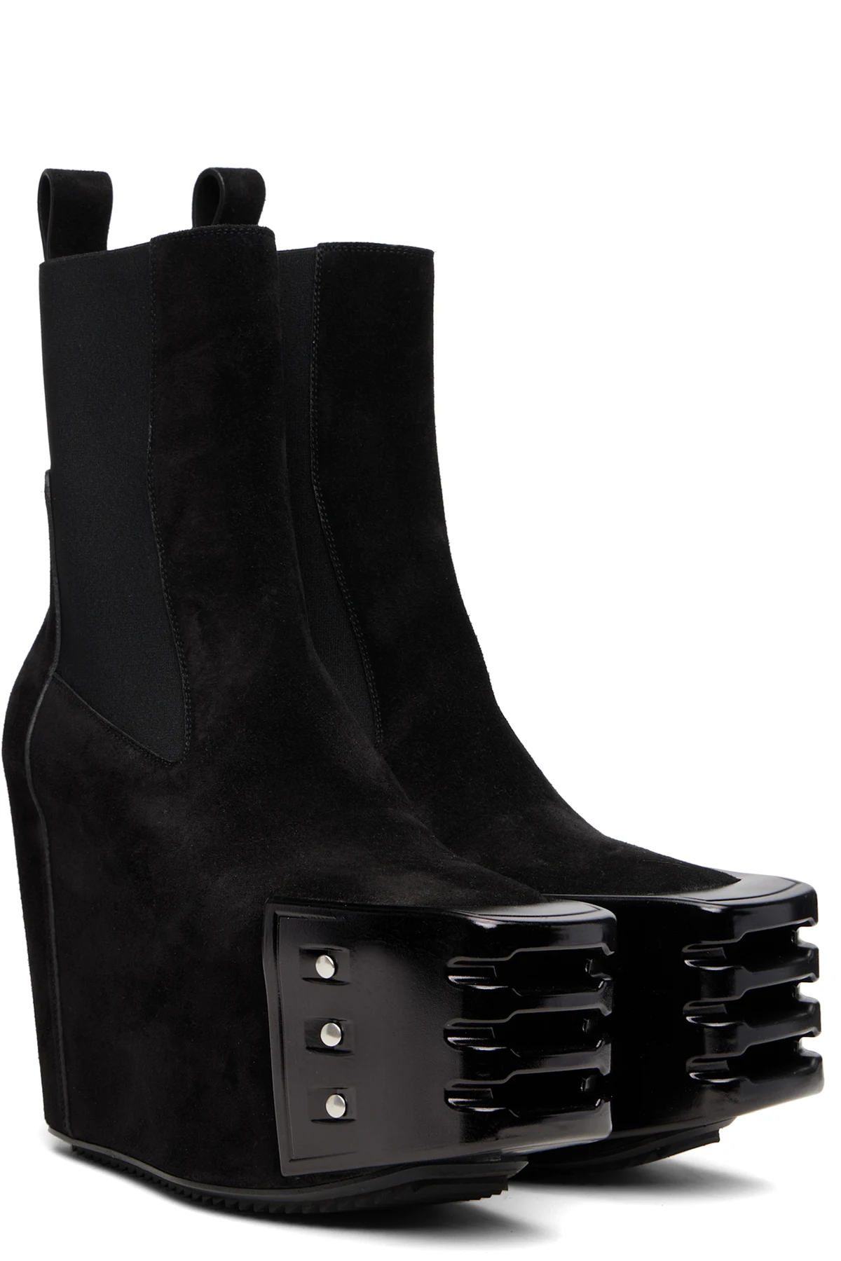 Black Grilled Wedge Beatle Suede Chelsea Boots